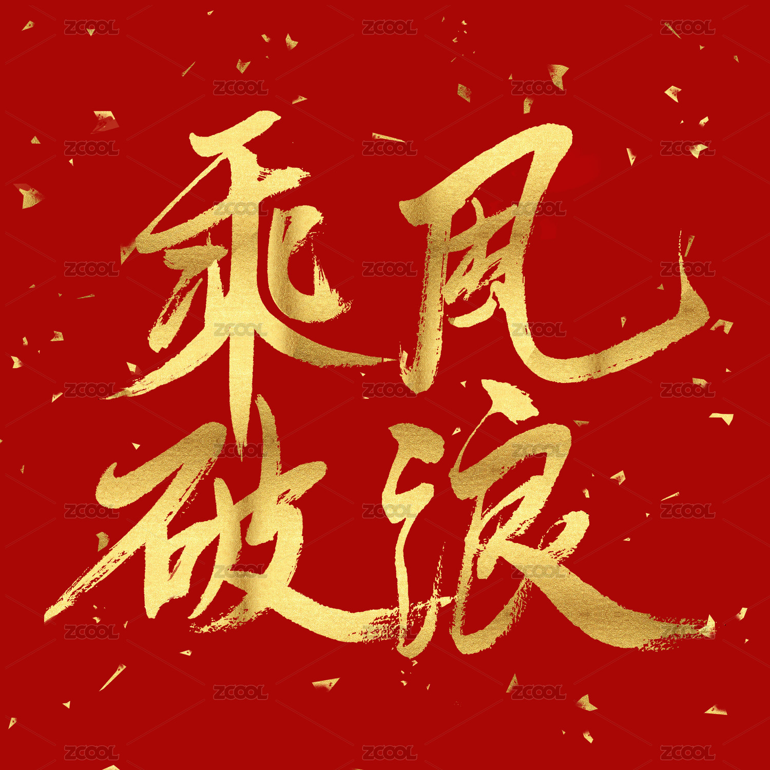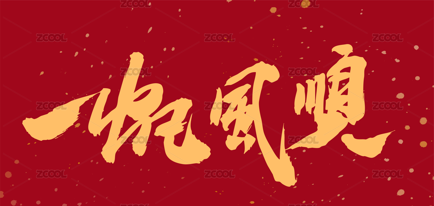 国潮,中国风,书法,艺术,手写,字体,毛笔,成语,矢量,乘风破浪