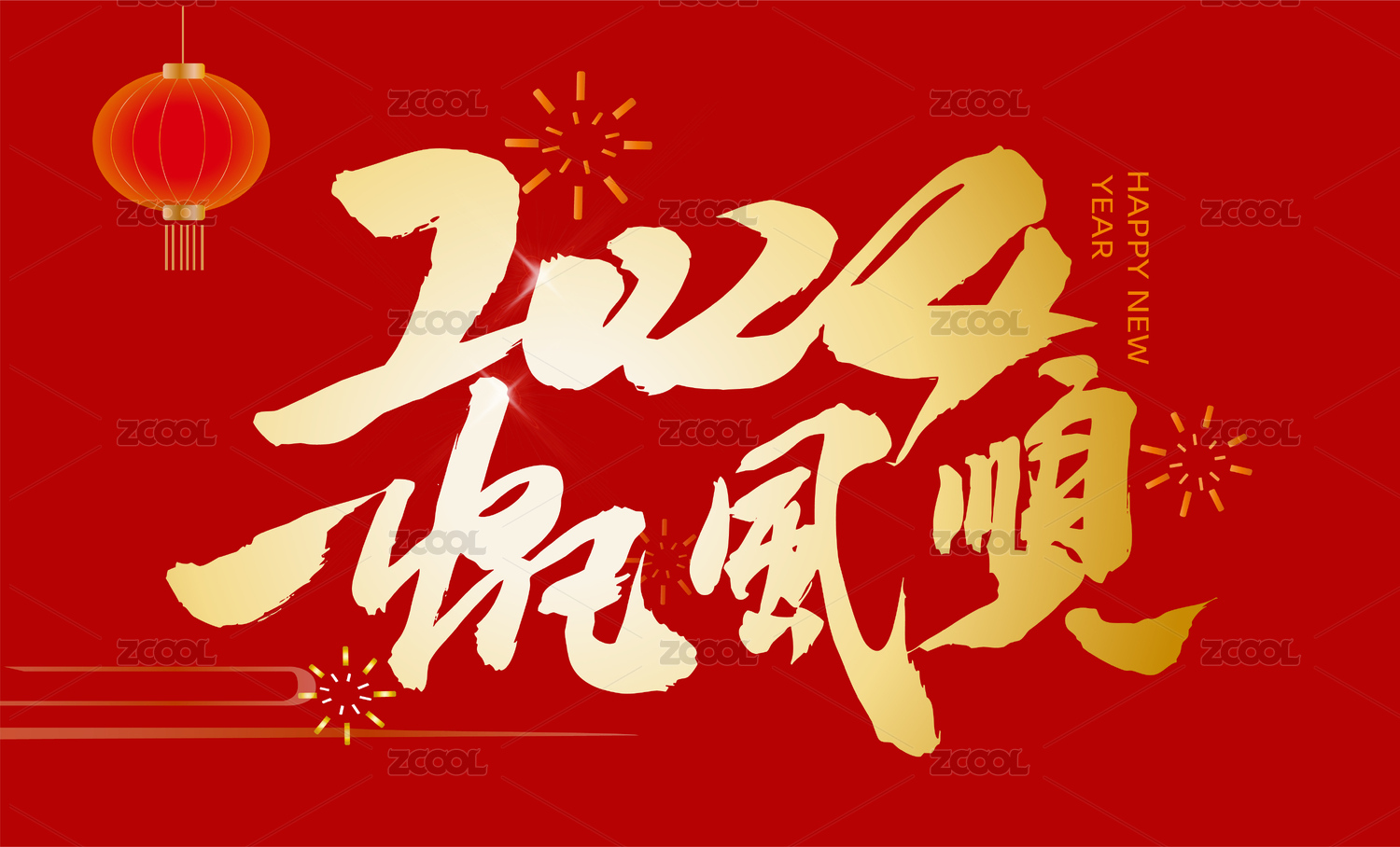 2024年红中国春节龙年艺术毛笔字海报