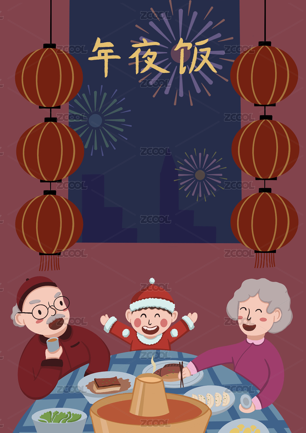 除夕夜插画