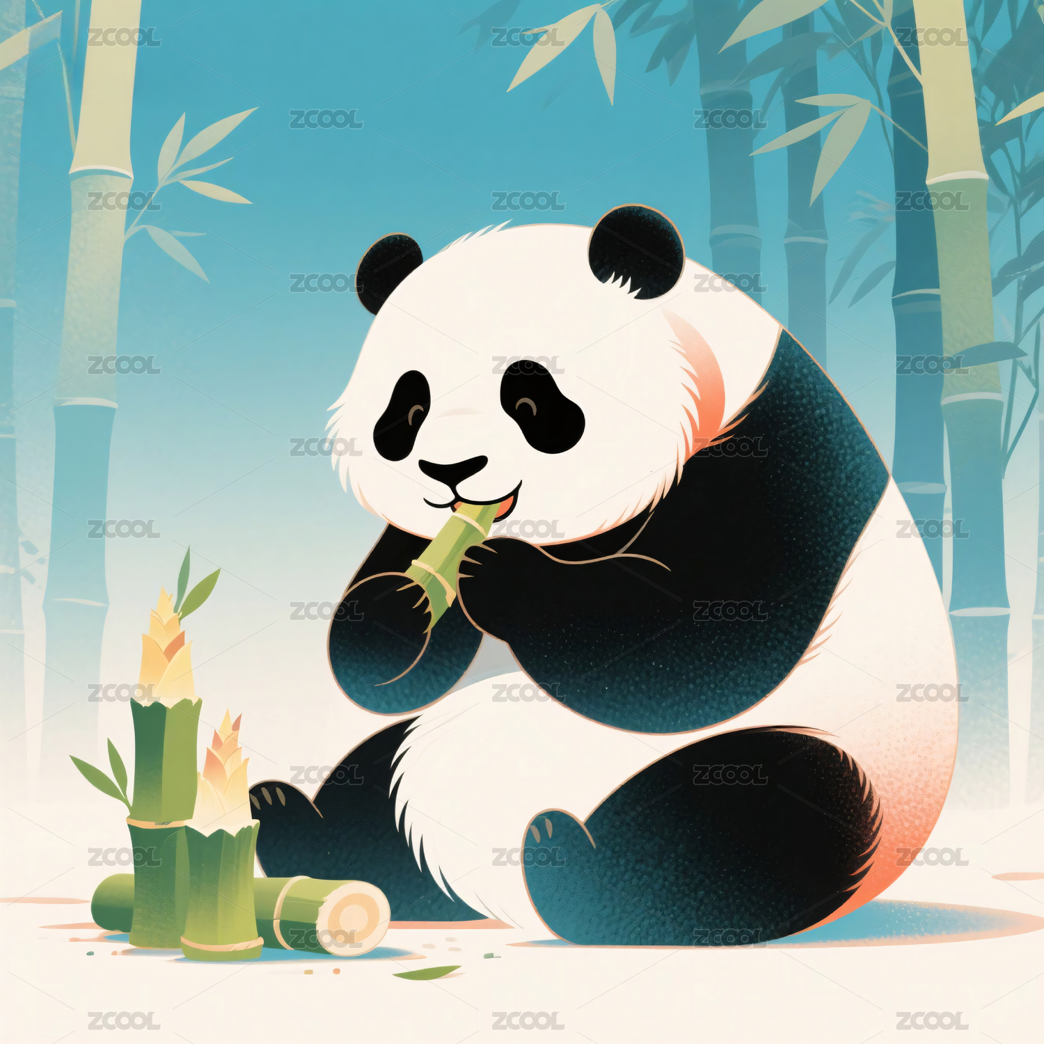 熊猫,大熊猫,卡通,可爱,动物,插画,治愈,快乐,呆萌,简约