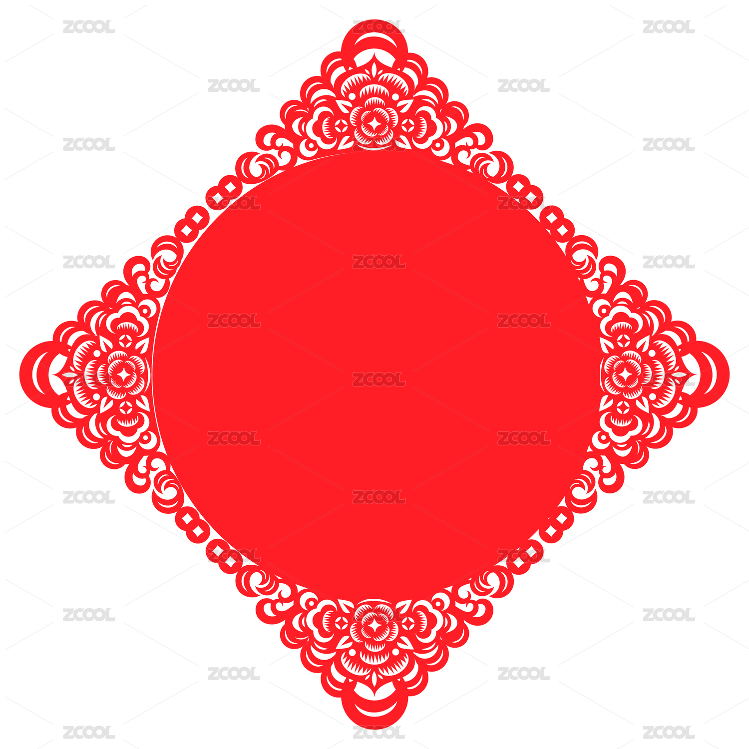 传统中国剪纸风方形装饰边框花纹矢量素材