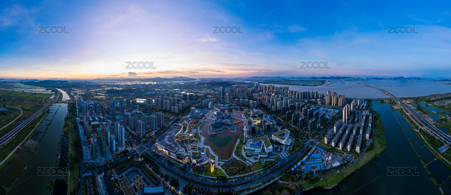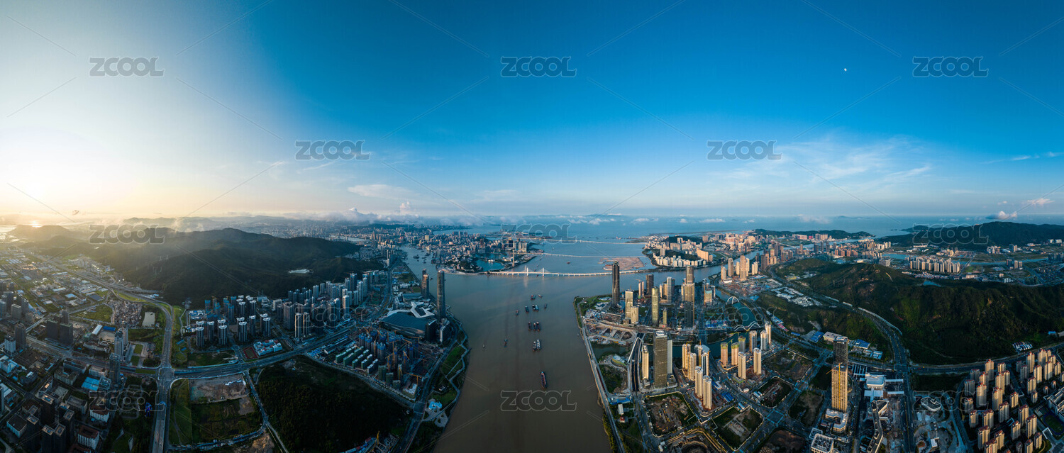 粤港澳大湾区的珠海横琴和澳门日出城市风光