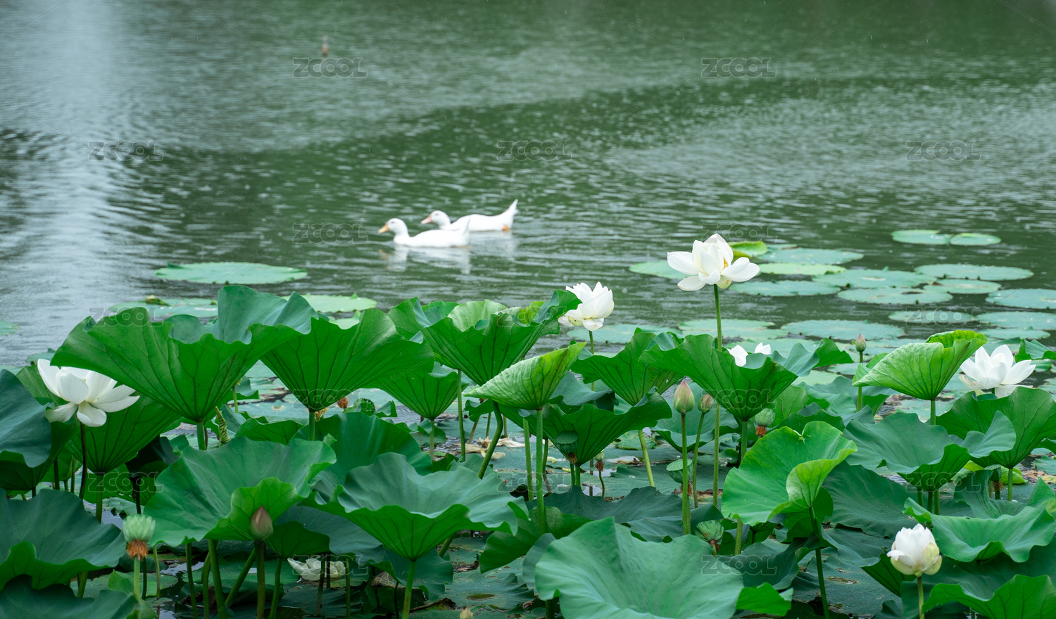 荷花与白色的鸭子
