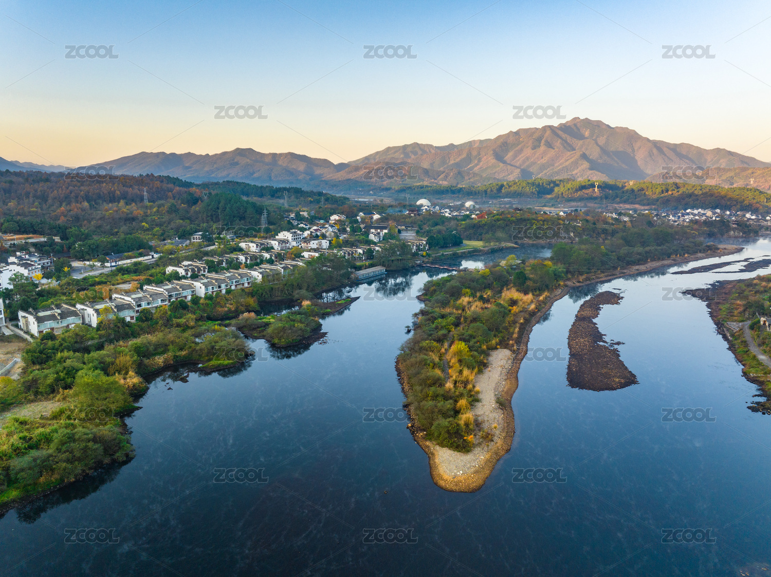 航拍安徽宣城泾县桃花潭风景区老街村庄