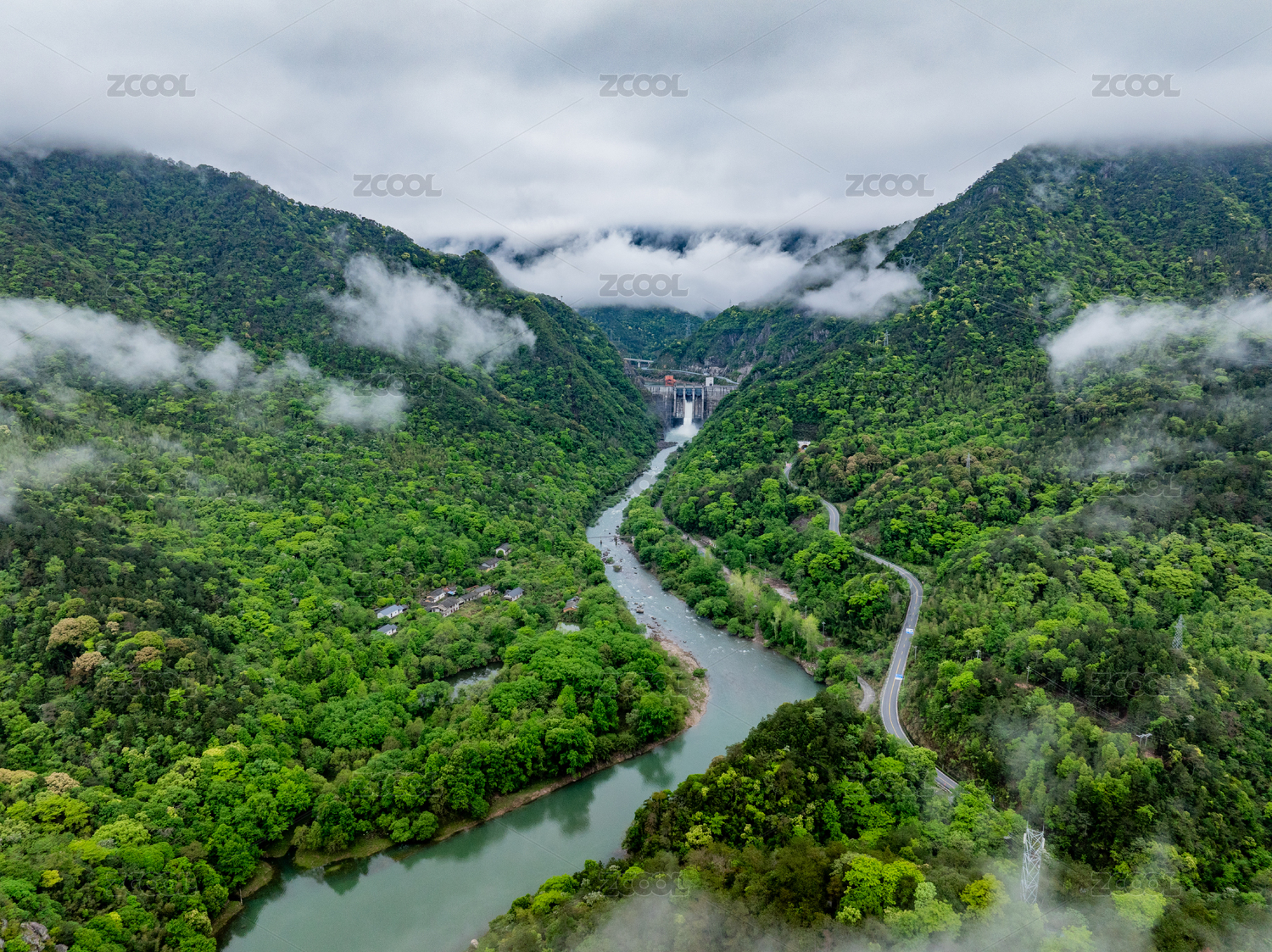 中国浙江丽水古堰画乡自然风光云雾缭绕