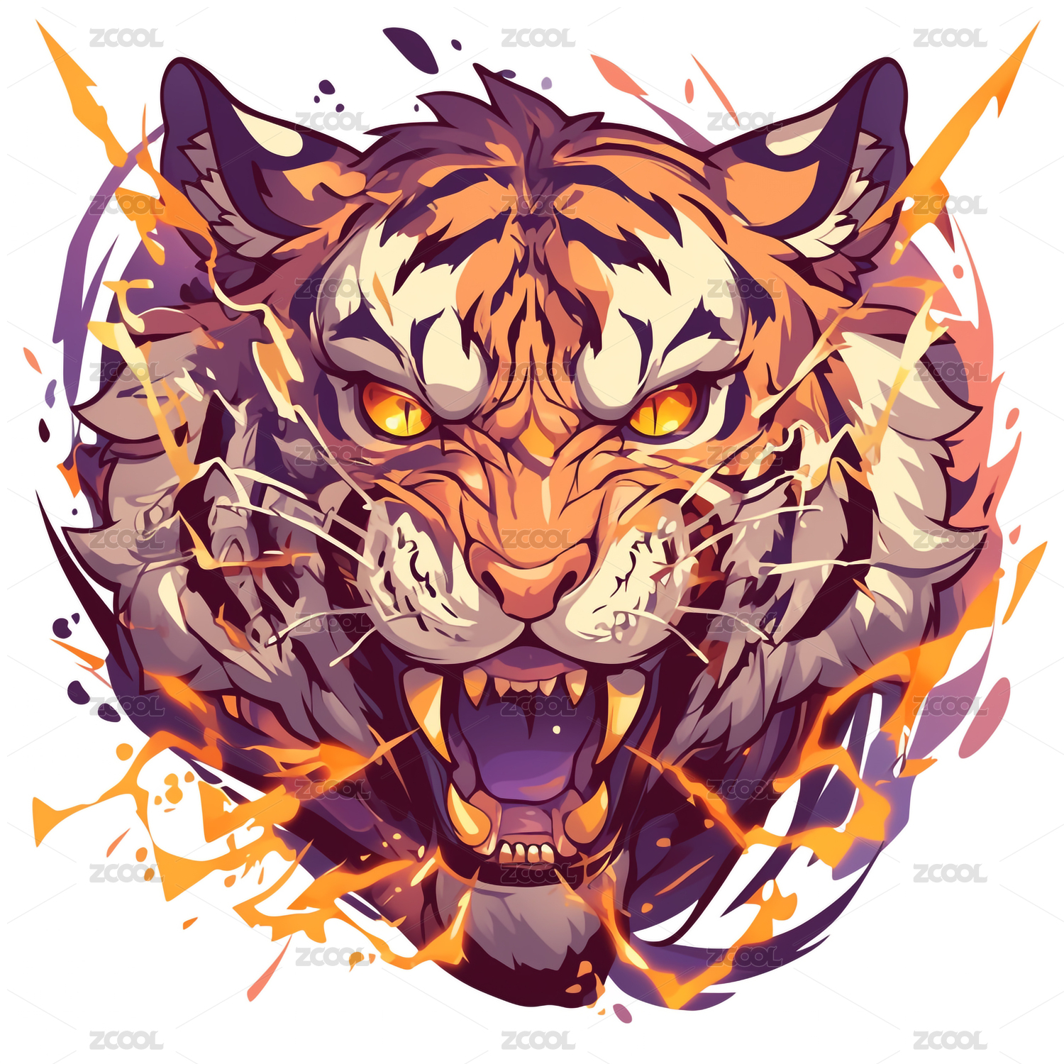 复古美式怒目圆睁咆哮的老虎头像装饰插画