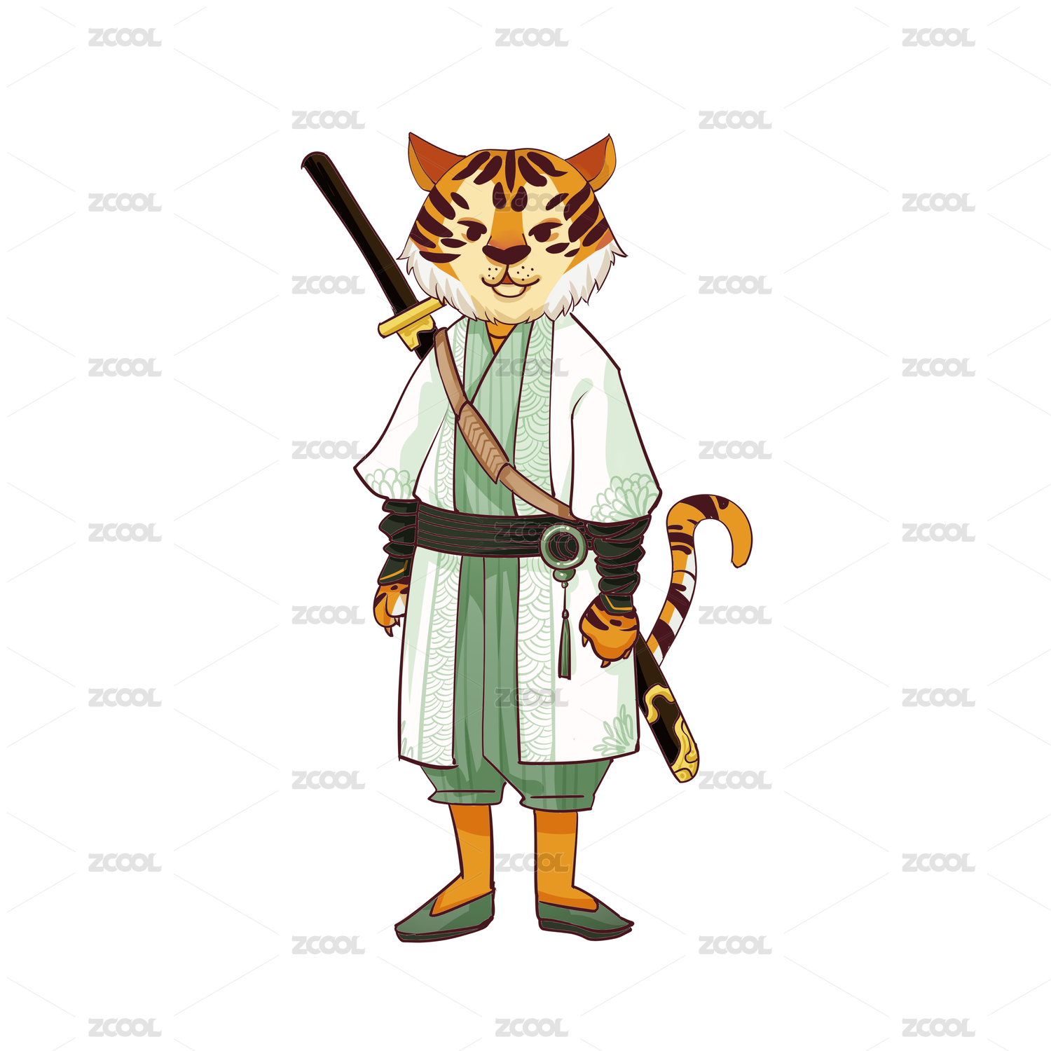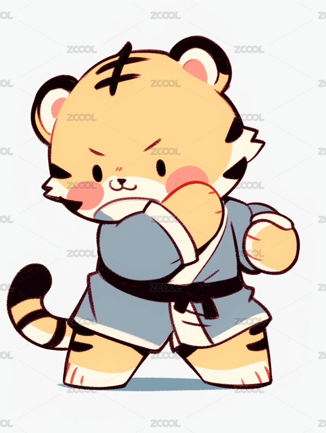 老虎拟人动物拟人图案运动跆拳道功夫太极拳