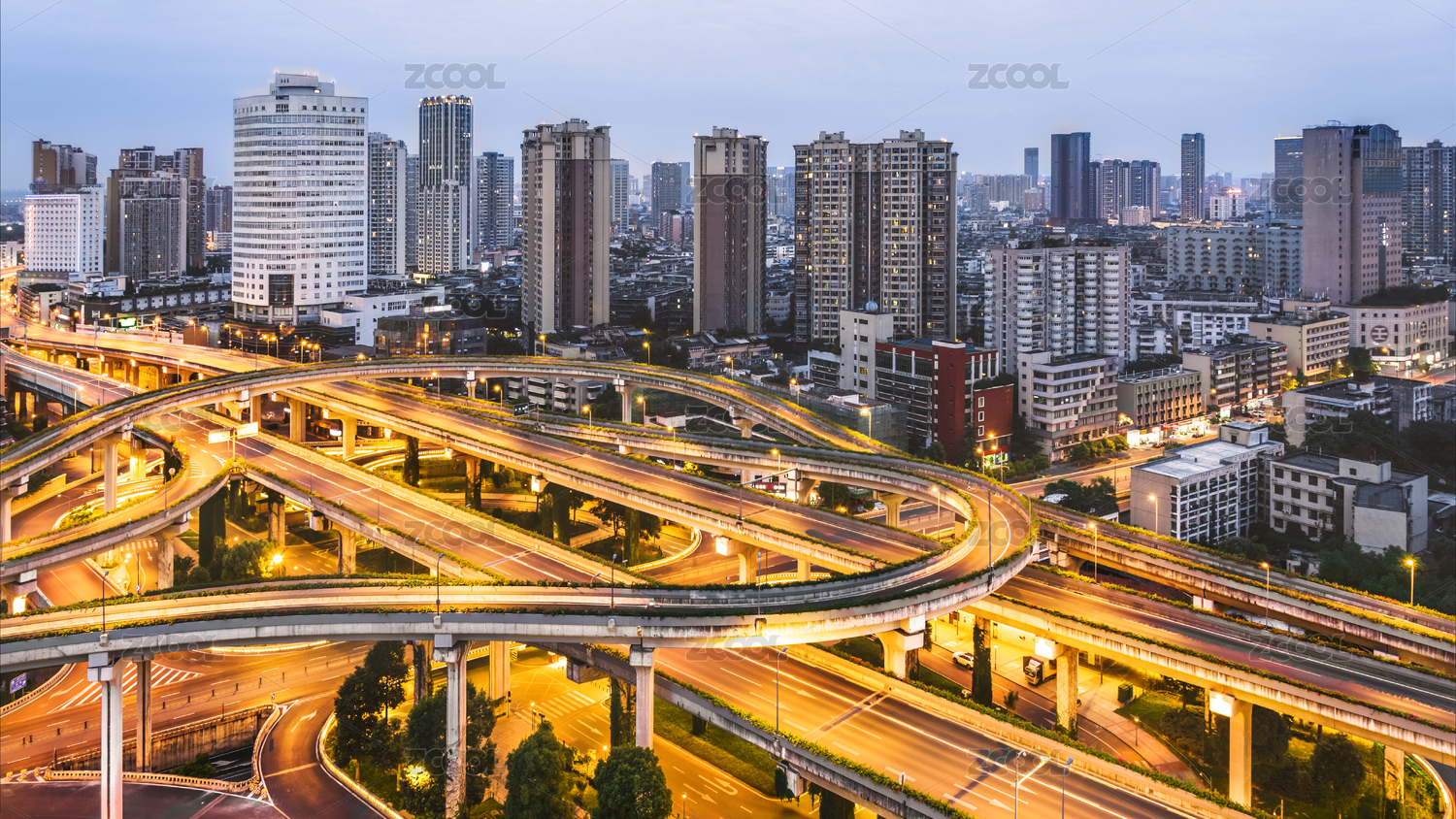 马鹦路附近三叶草状城市立交桥旁晚夜景