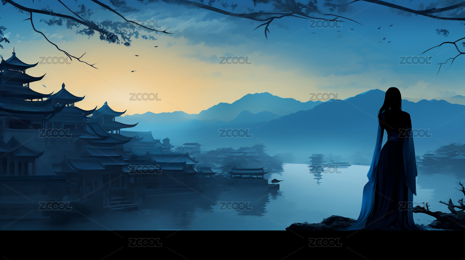 中秋,嫦娥,月亮,剪影,夜晚,神话,故事,仙子,天空,夜色