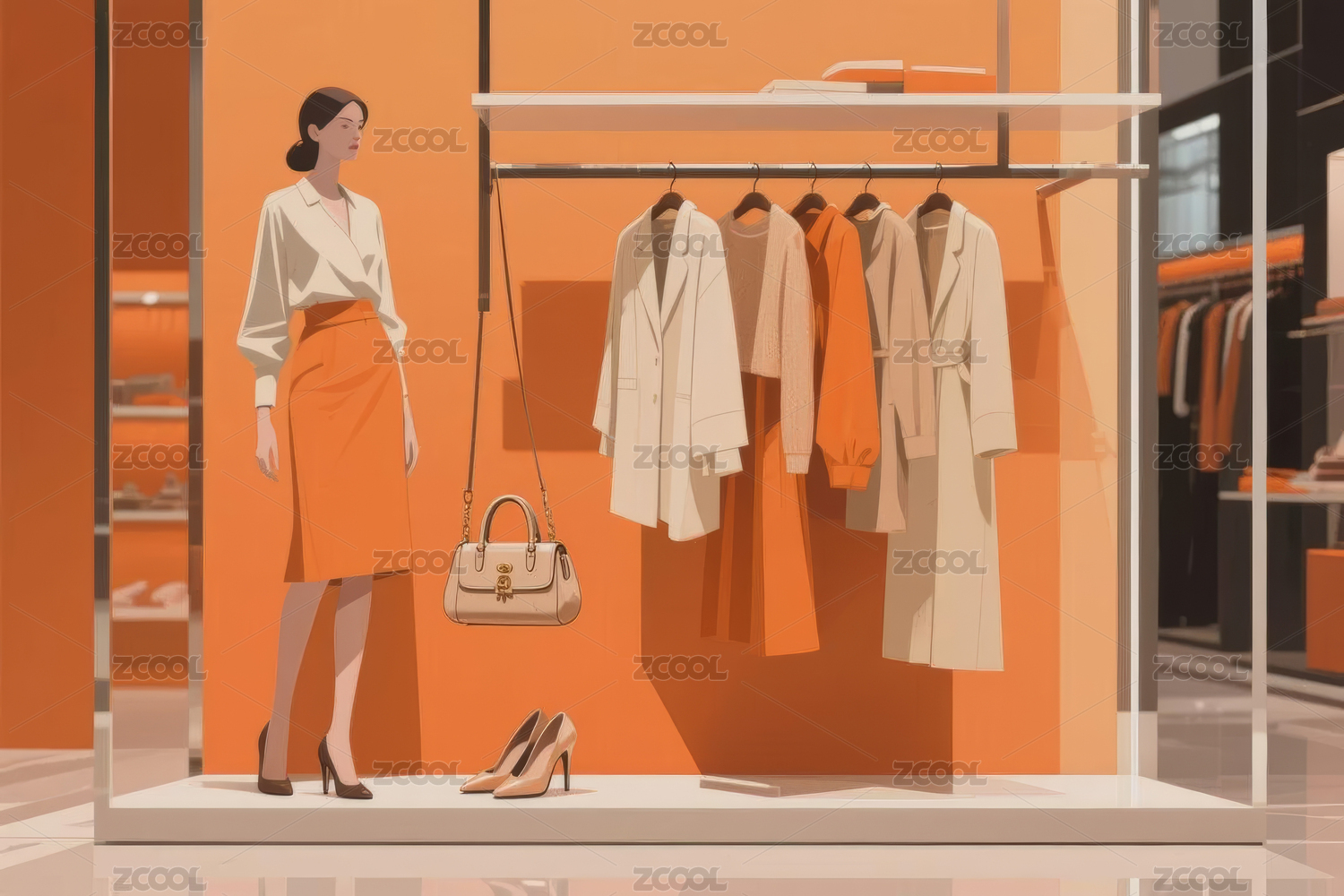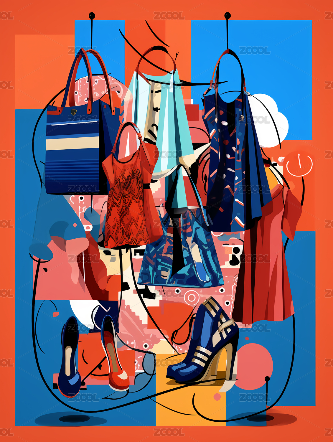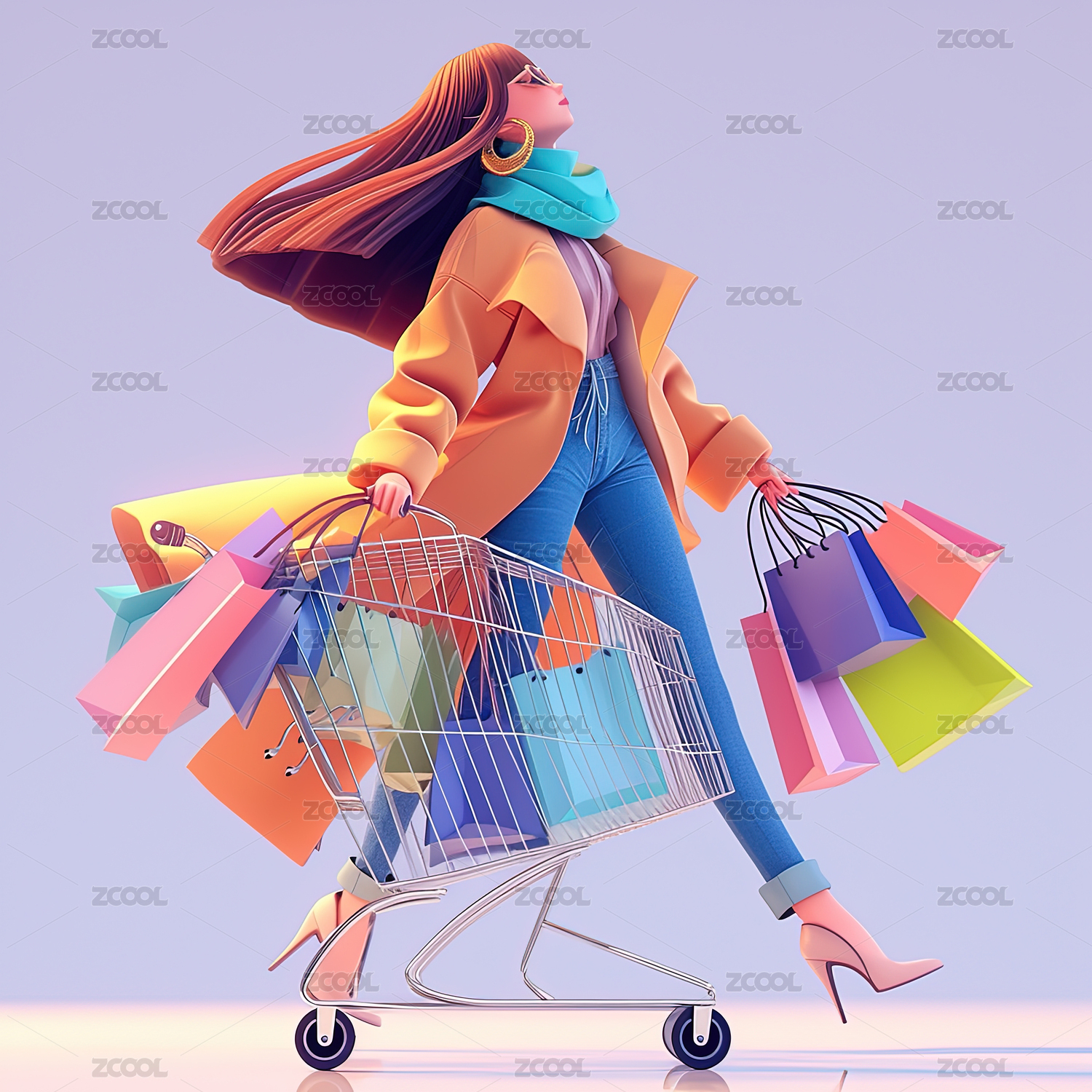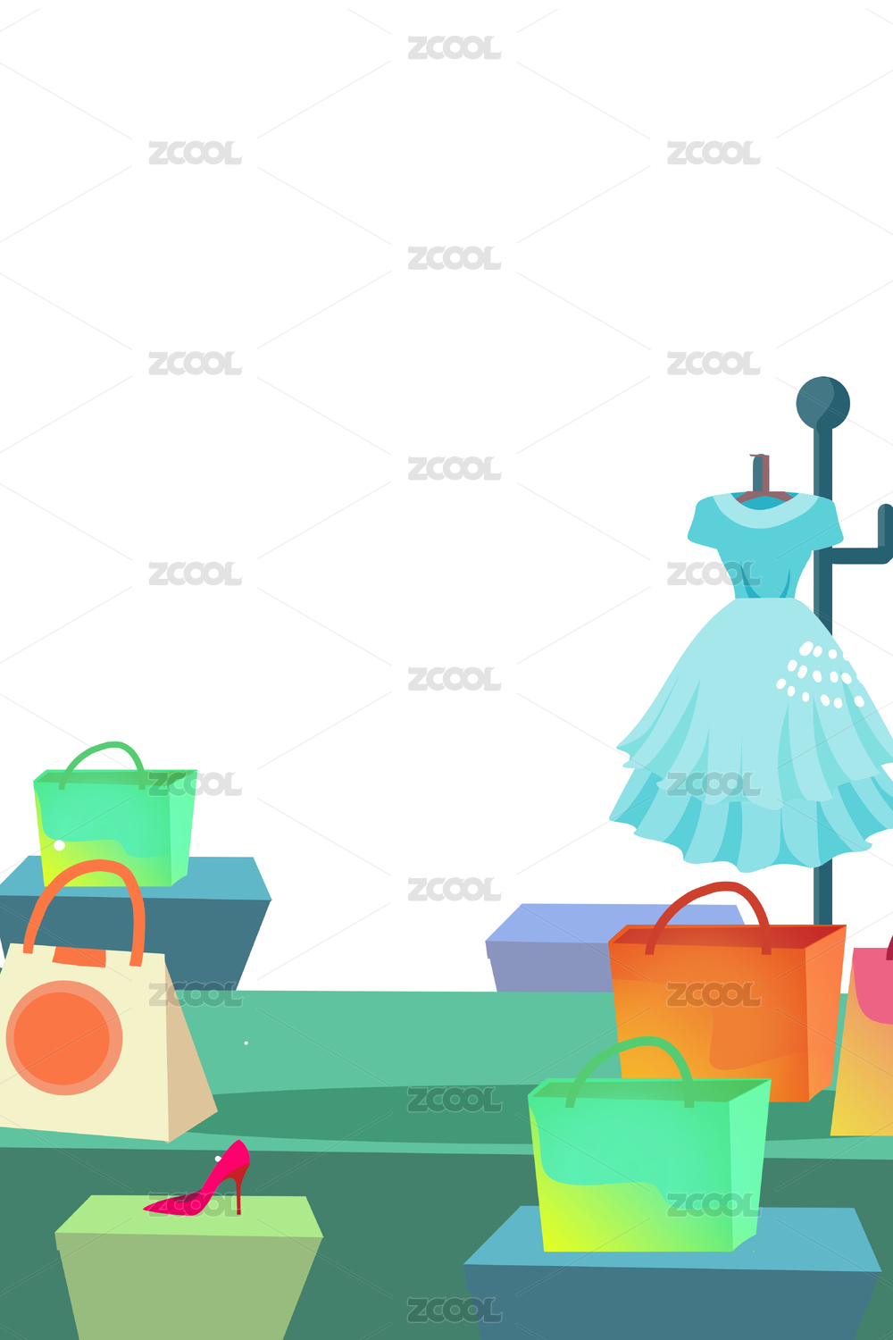 年轻时尚的女士手提购物袋网络购物折扣插画