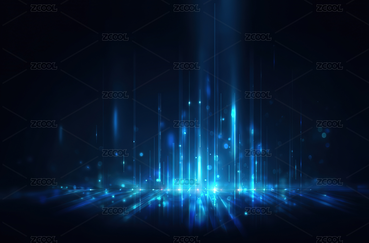 黑色背景下被照亮的蓝色光纤的特写镜头