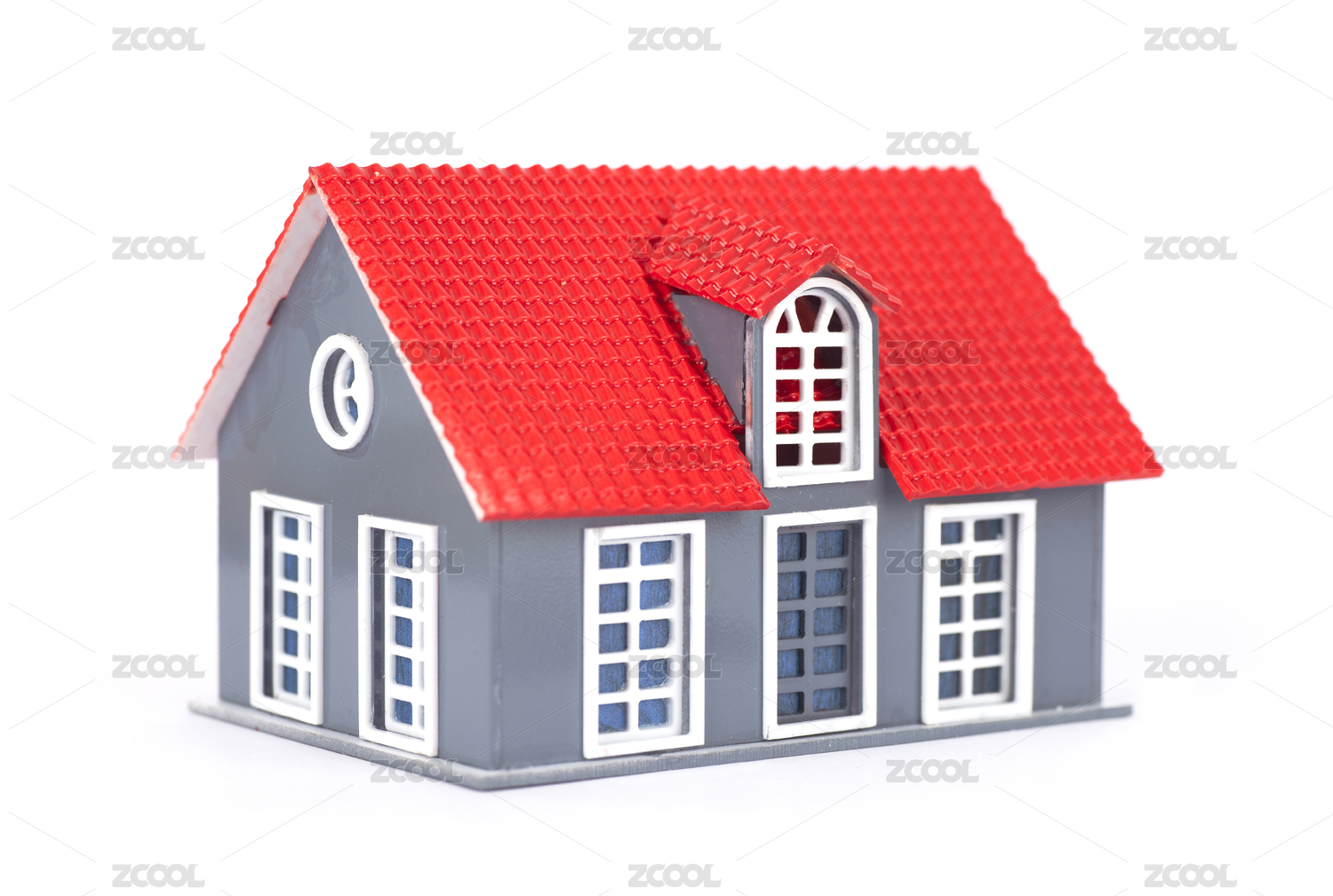 单独的一个红屋顶房屋模型,白色背景
