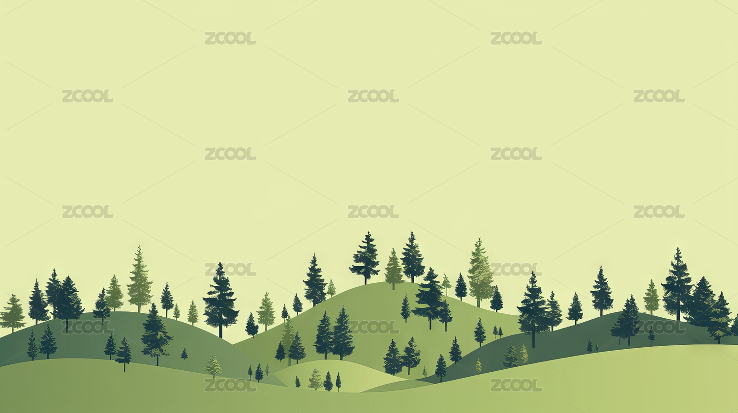 绿色山峦与松林
