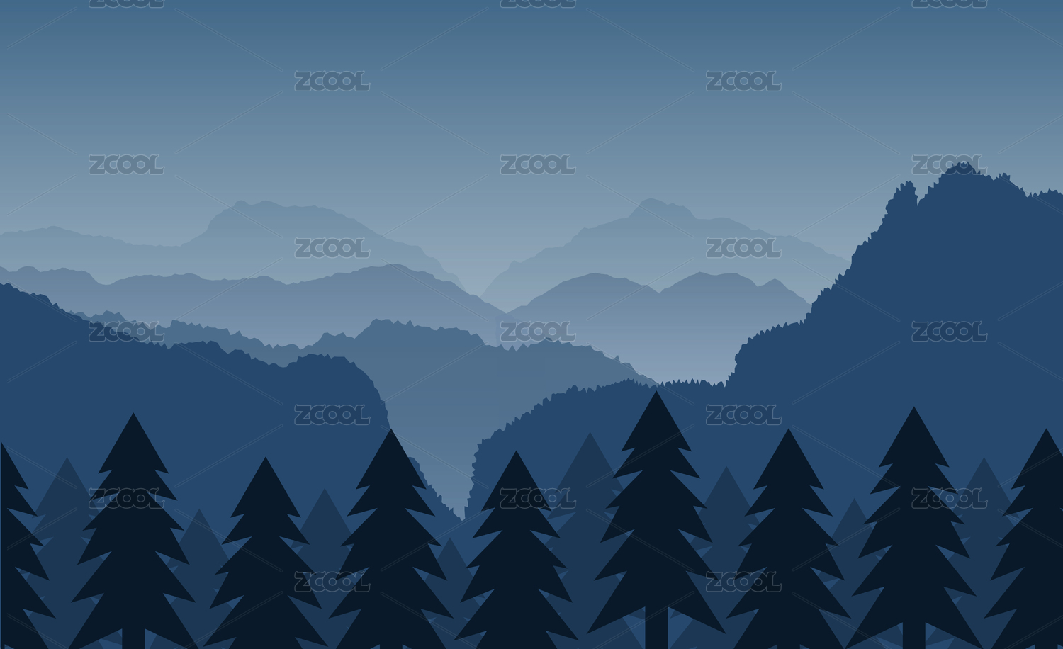 深蓝色的山林风景插图