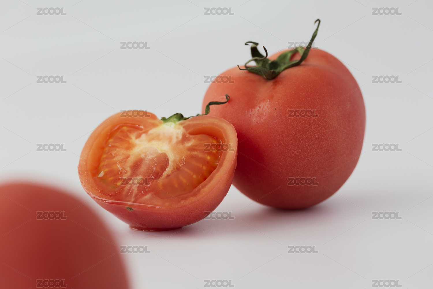 白色背景中切开和没切开的西红柿