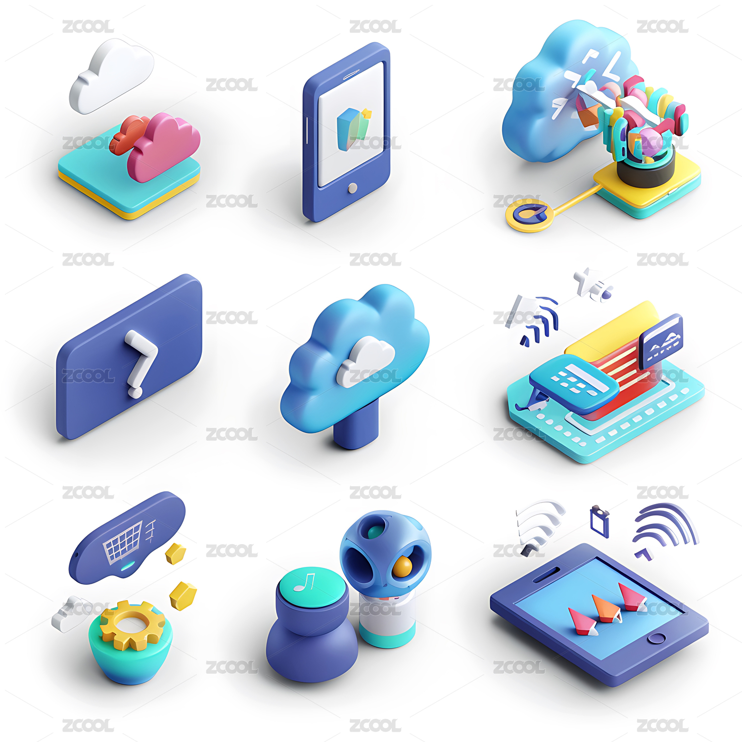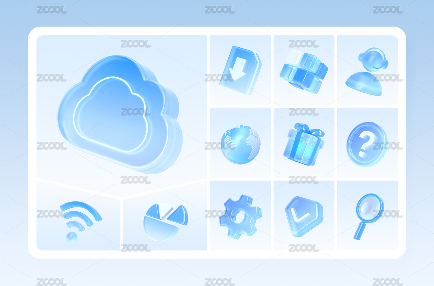 科技蓝白透光玻璃智能概念网络3D图标合集