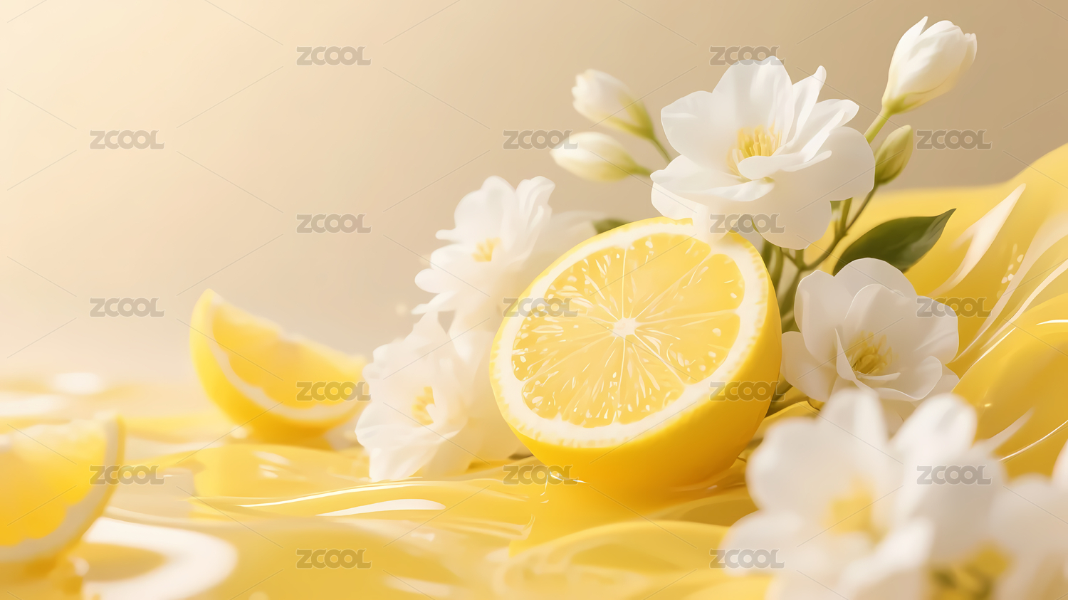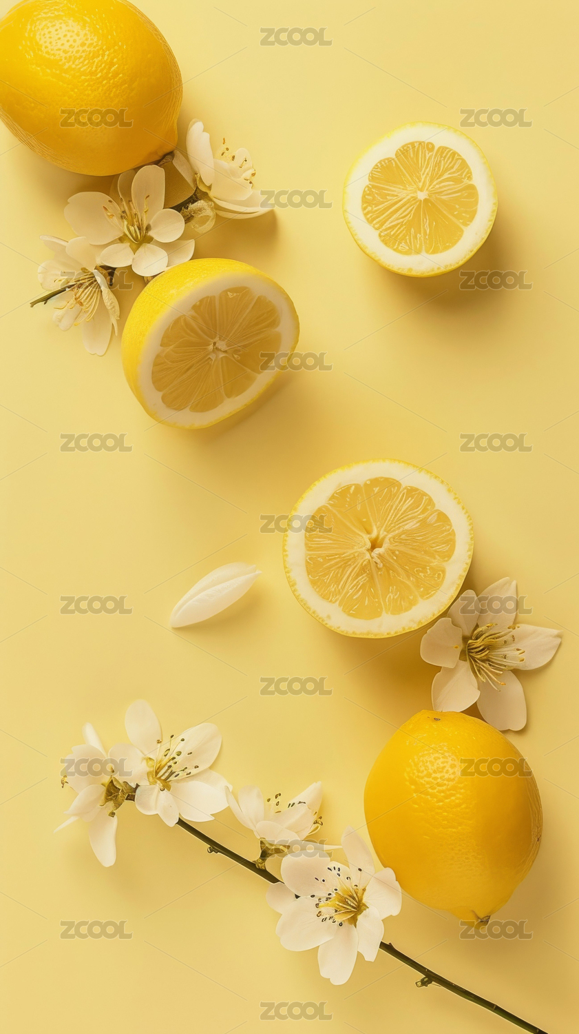柠檬与白花的清新搭配