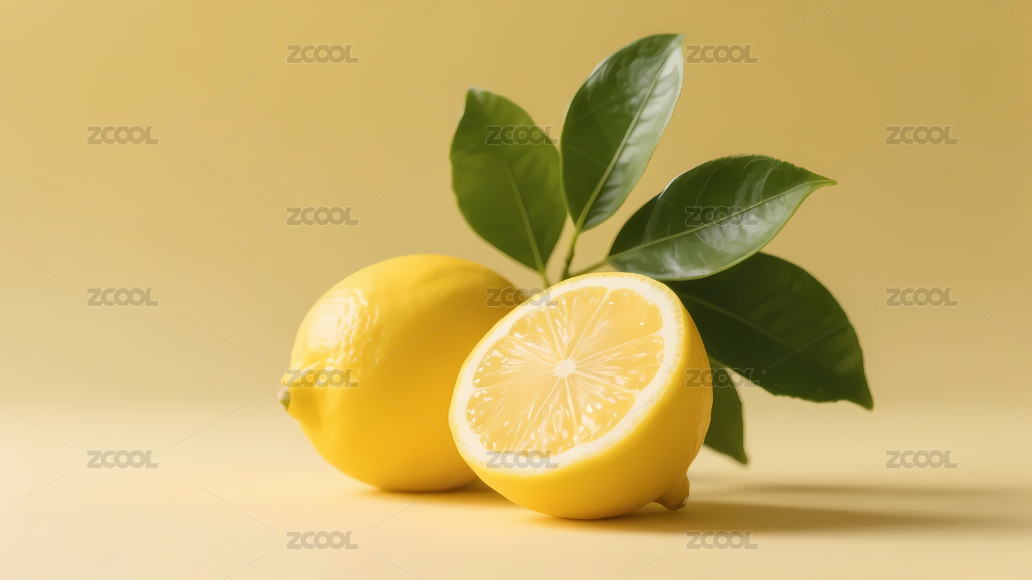 新鲜的柠檬与柠檬切面