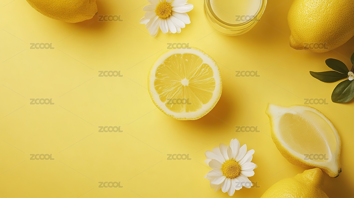 柠檬与雏菊的黄色背景装饰