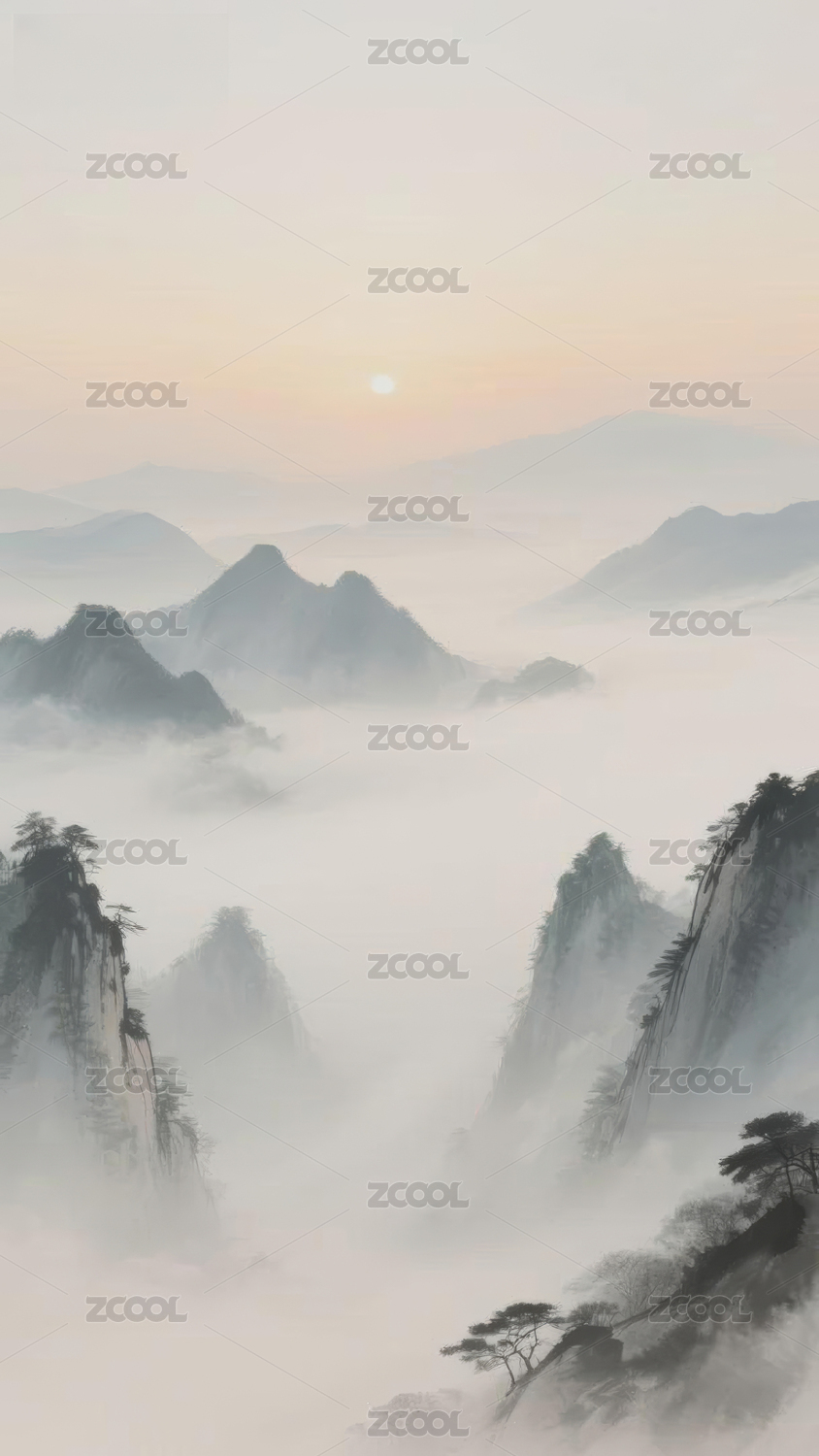 水墨画山峰自然环境背景