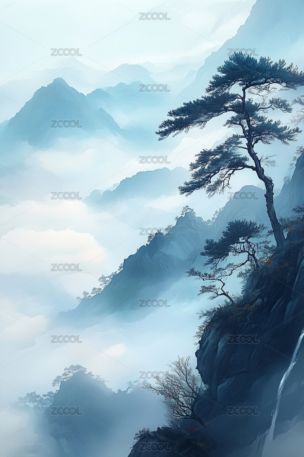 云雾缭绕山峰松树