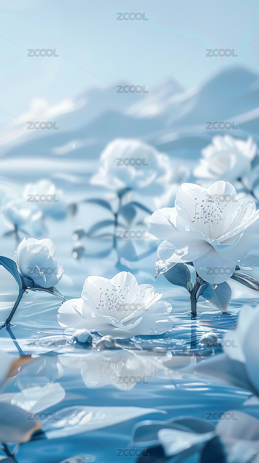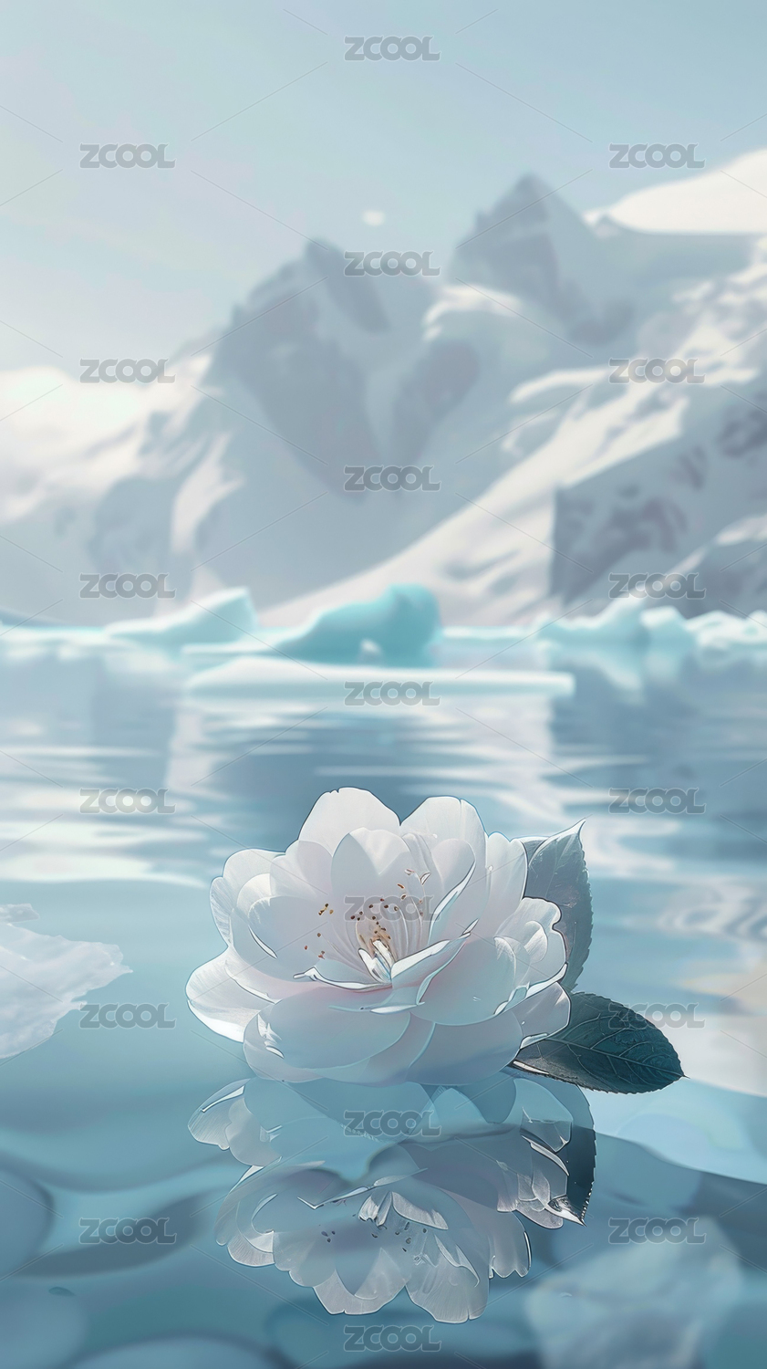 明亮高贵山茶花盛开倒影高清特写干净背景