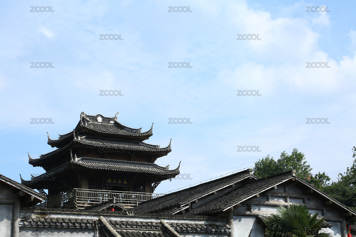 晴天的中国广东深圳甘坑客家小镇古建筑