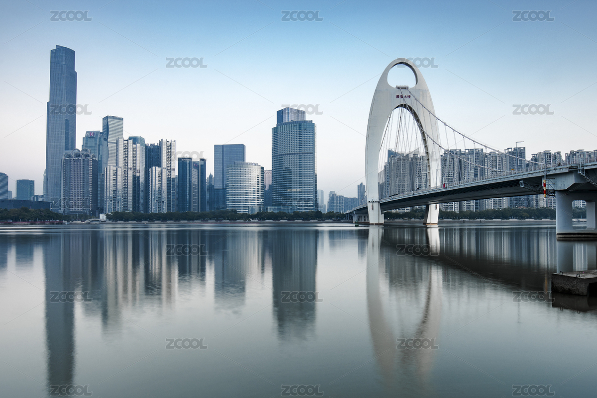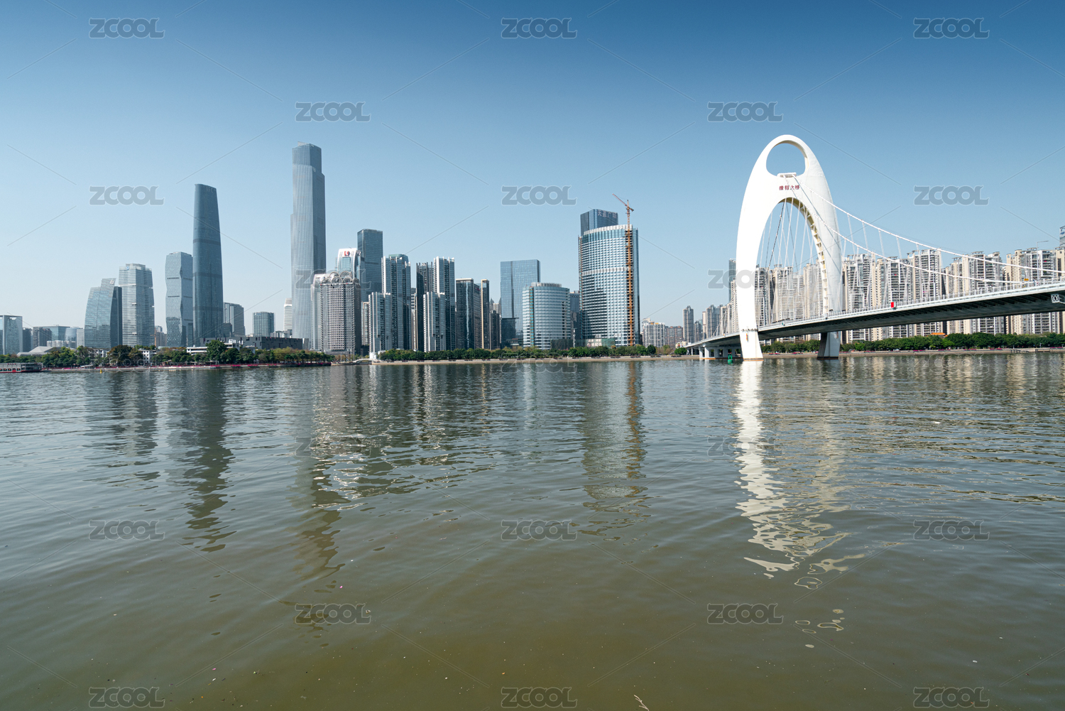 广州,城市,建筑,大桥,水面,江面,倒影,猎德大桥,珠江,拉索桥