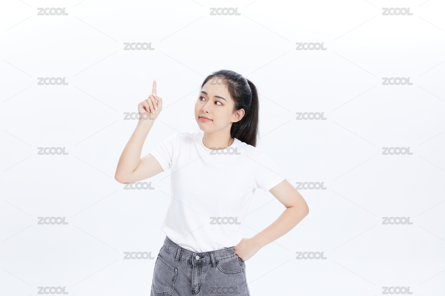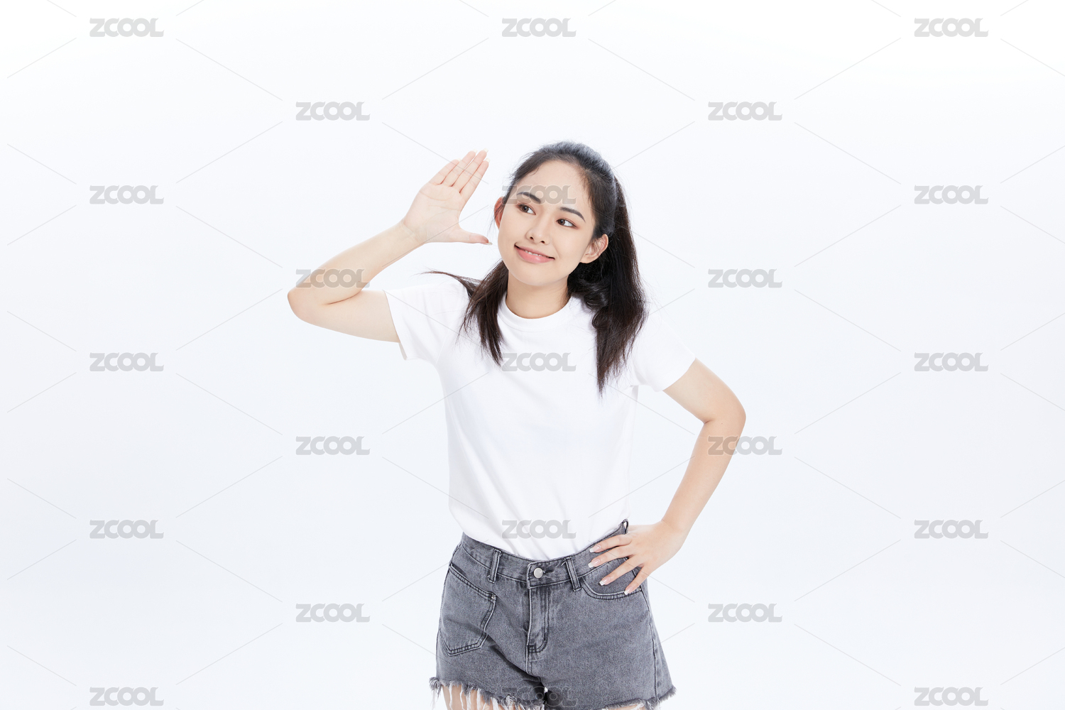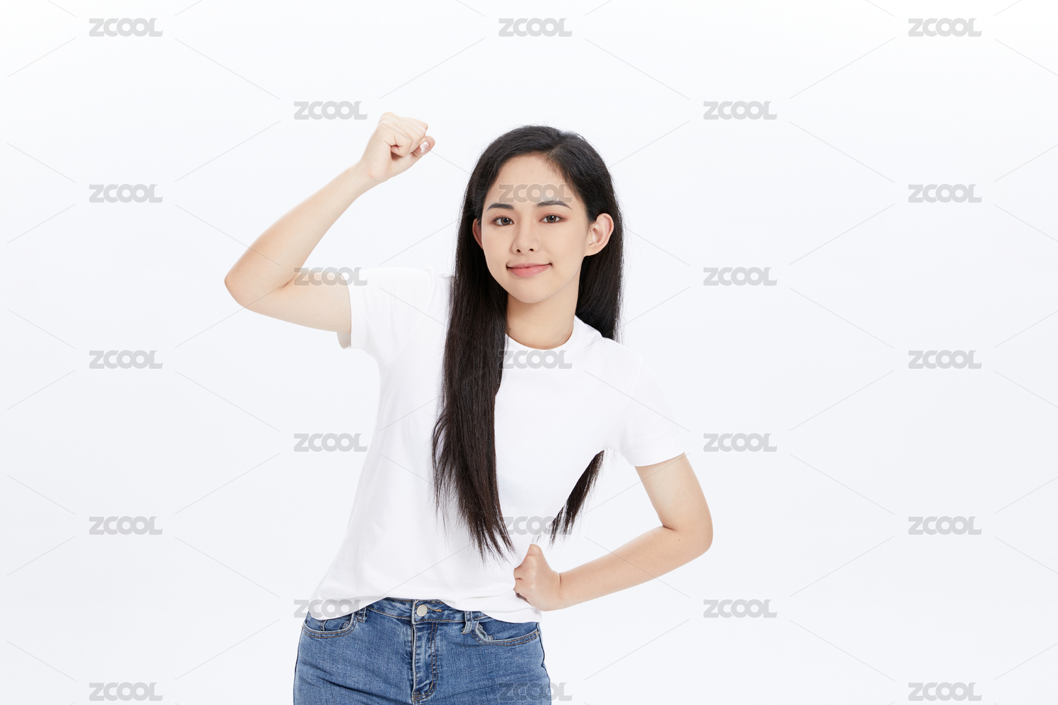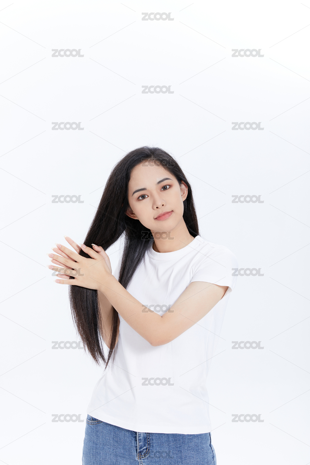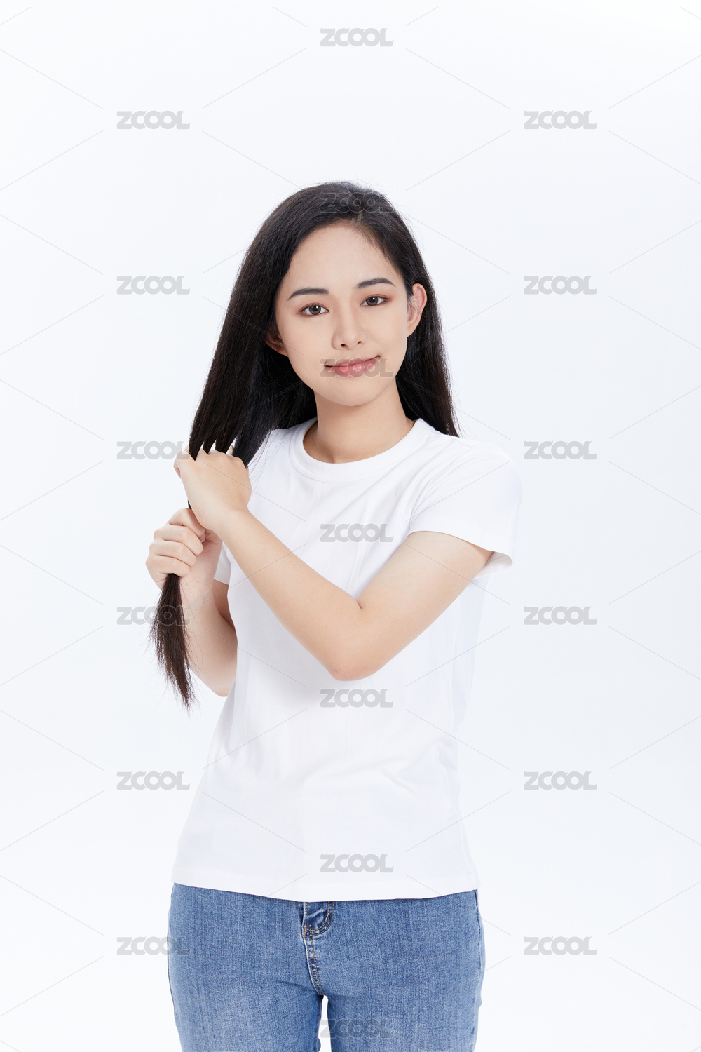 女性,大学生,白底,微笑,长发,T恤,休闲装,女孩,头发,梳子
