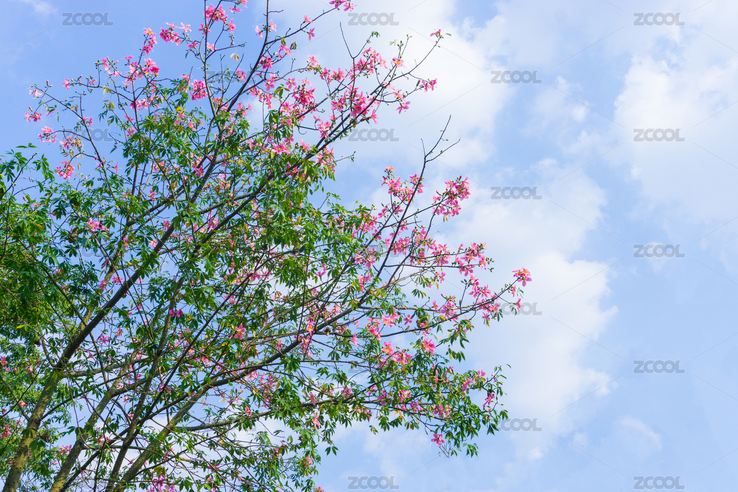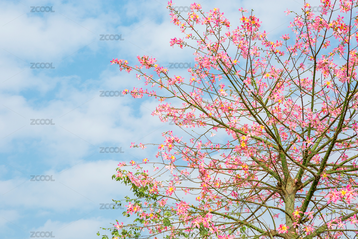 冬季盛花期蓝天白云下盛开的美的丽异木棉