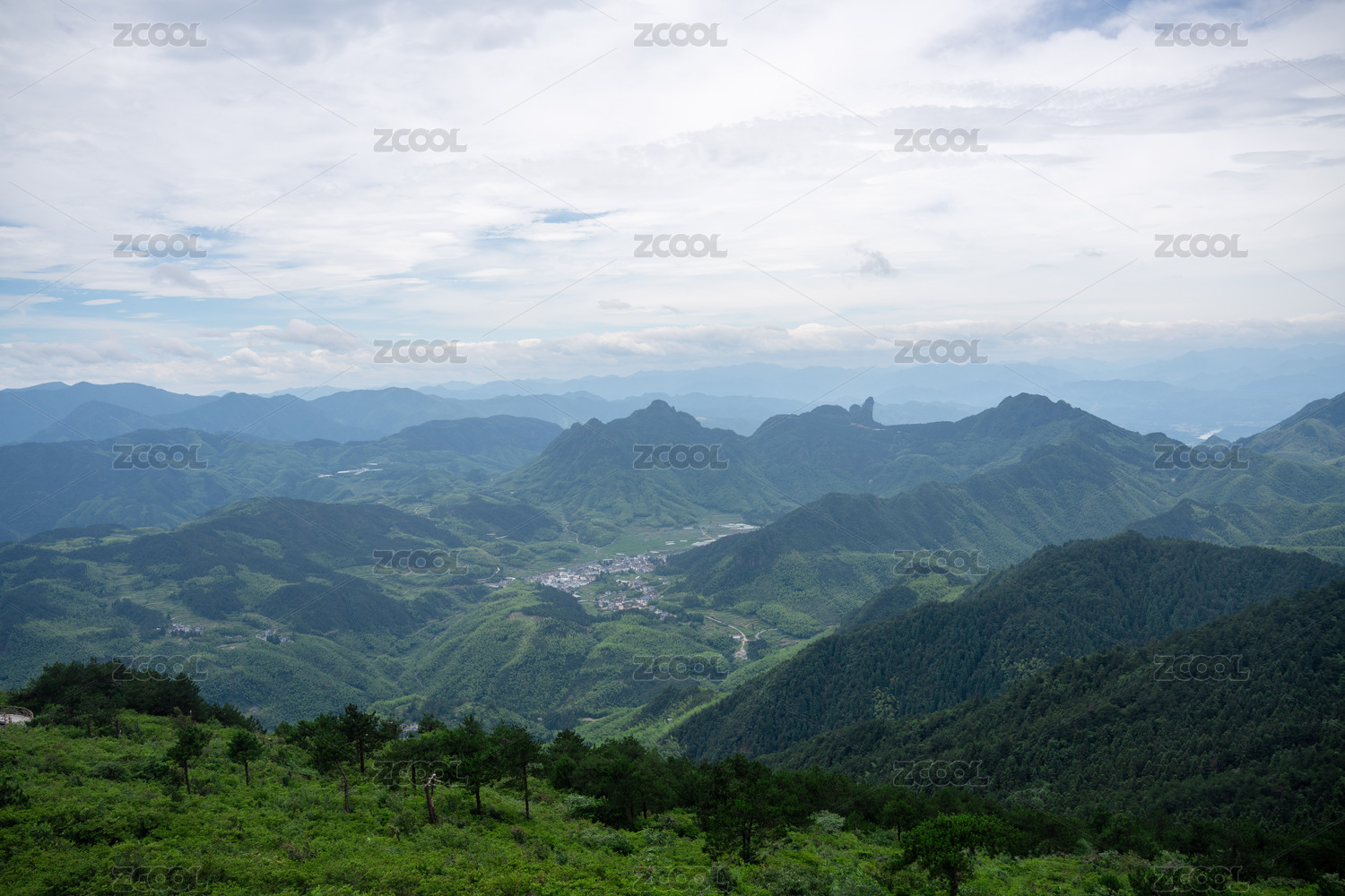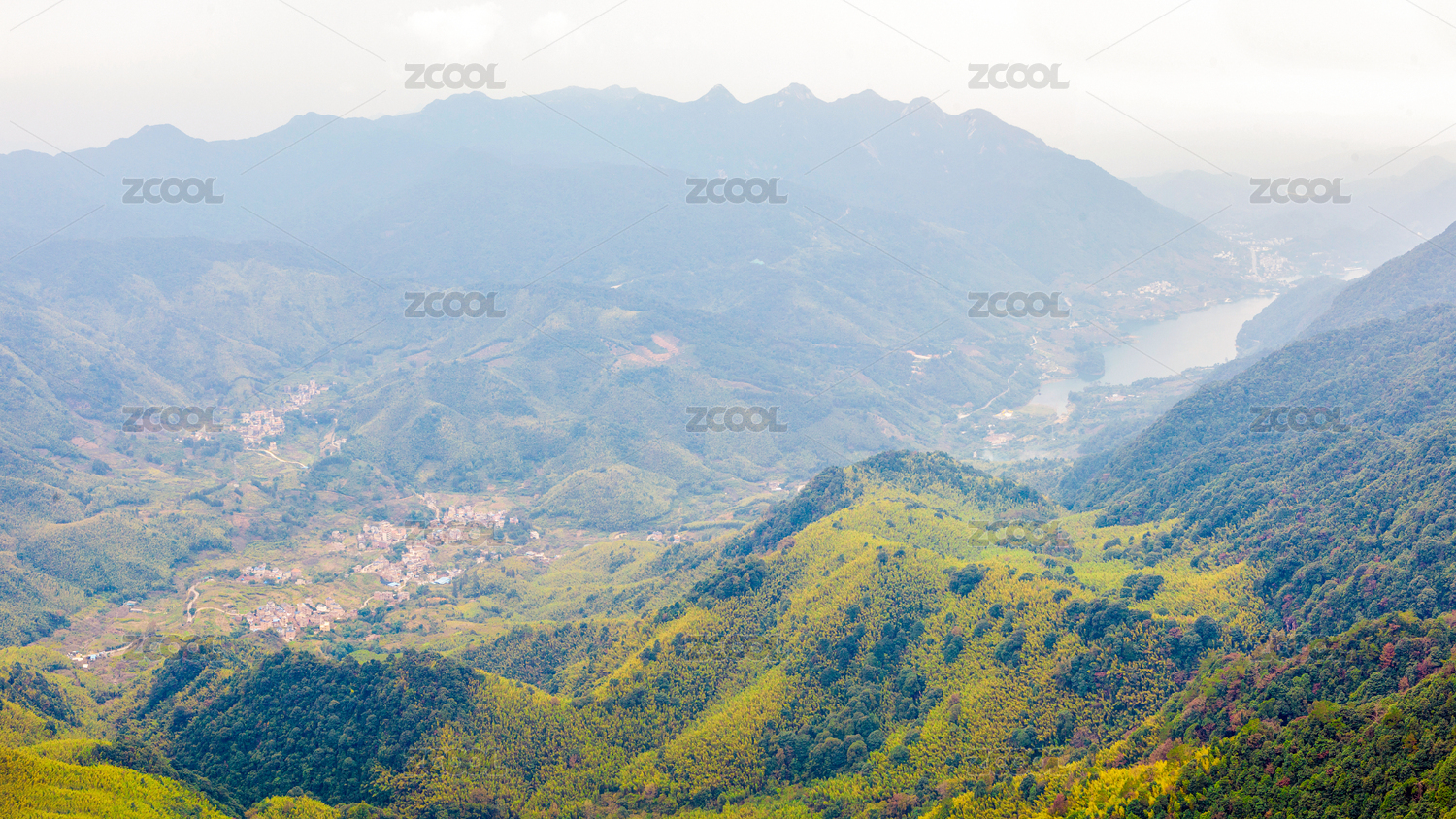 中国安徽省的大洲源景区的高山峡谷和美丽村