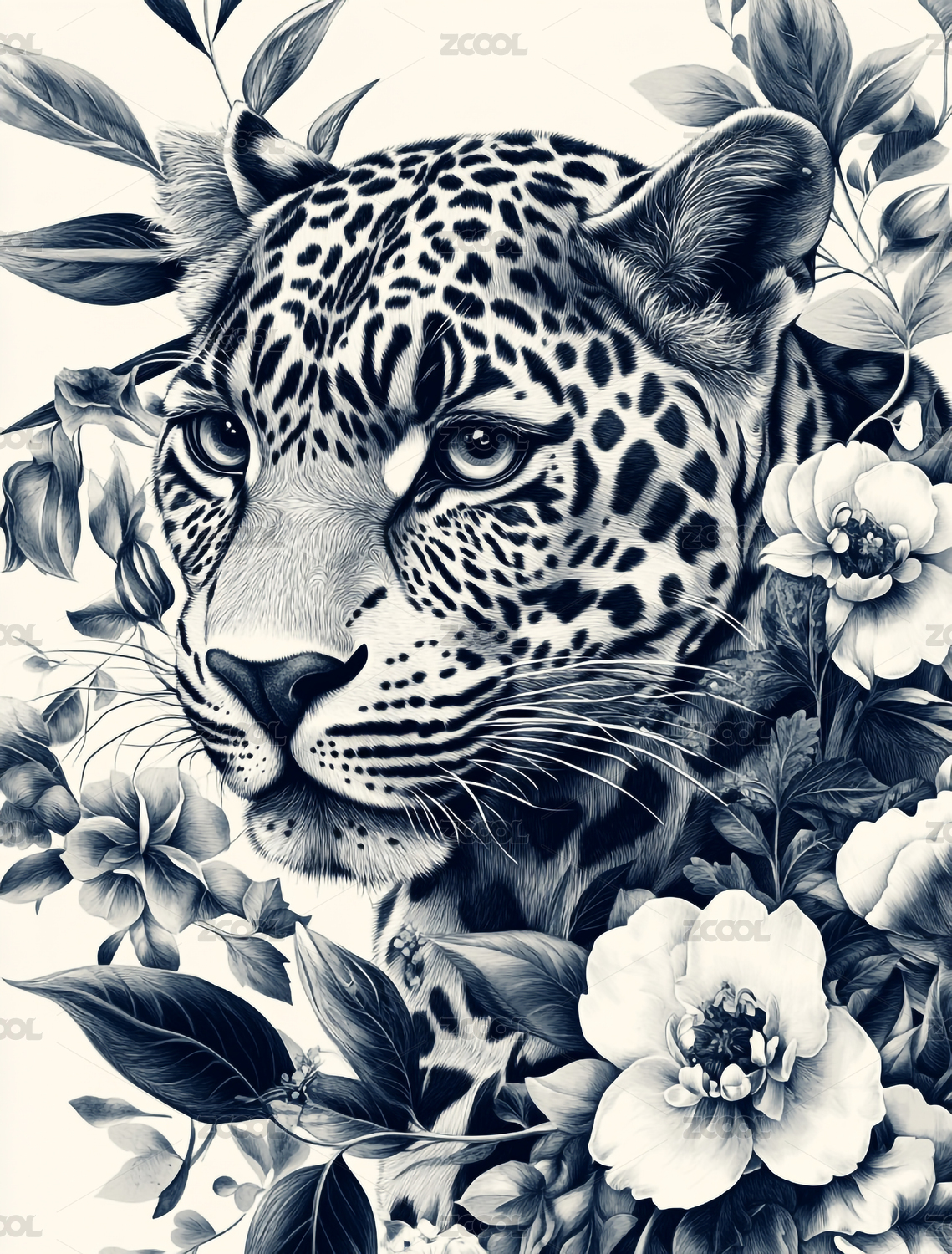 潮流嘻哈暗黑金钱豹T恤装饰图案