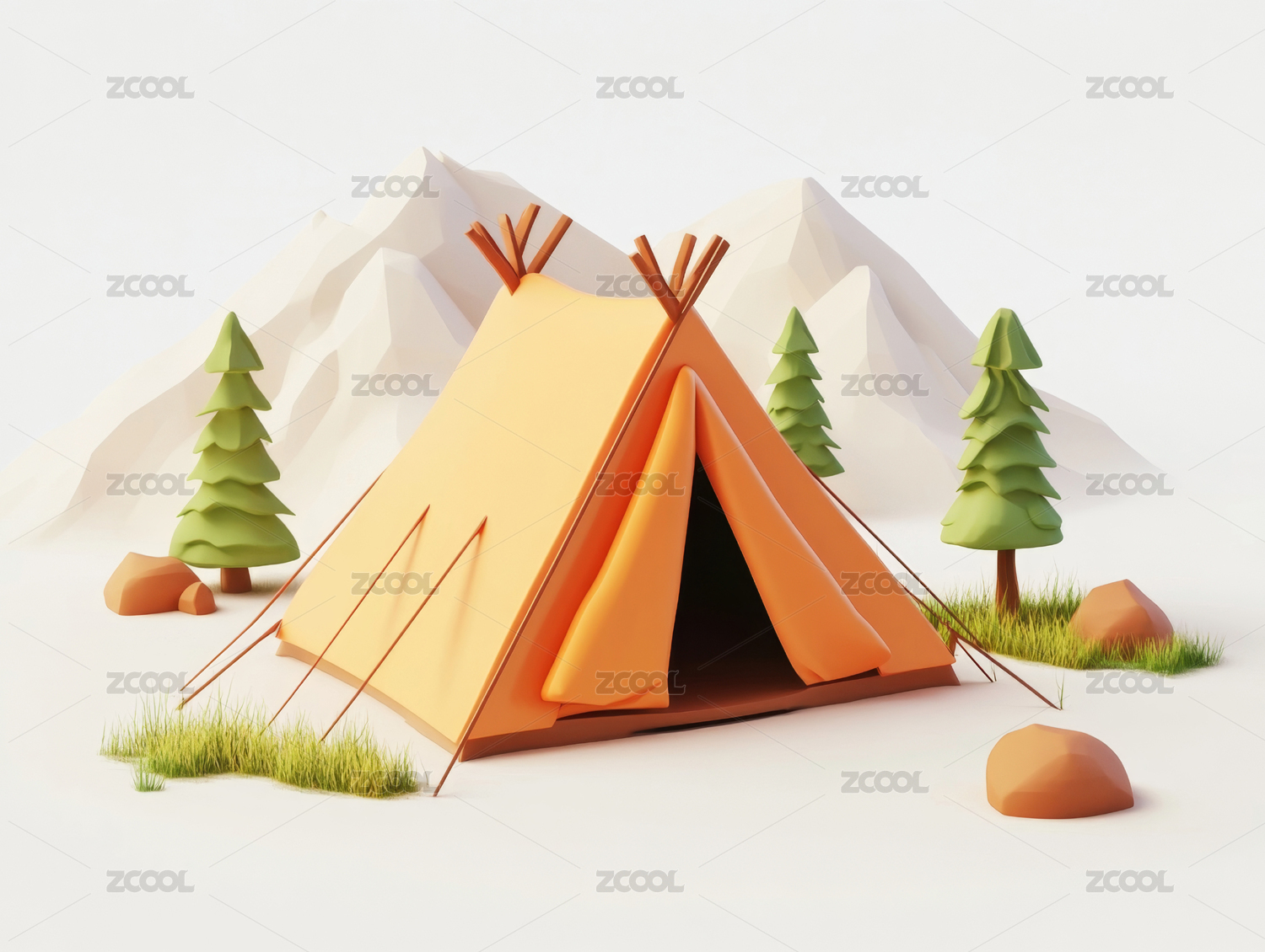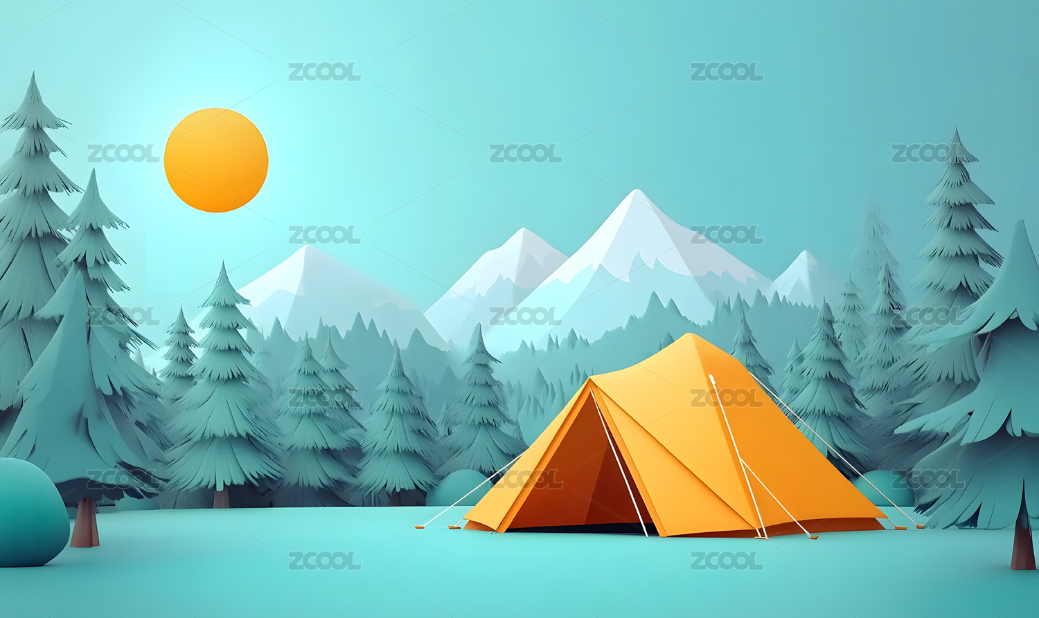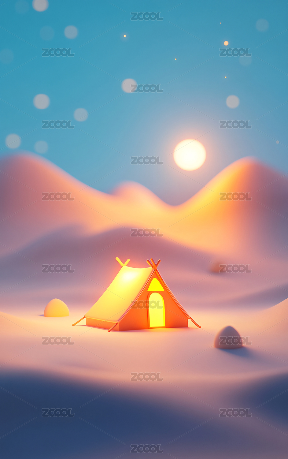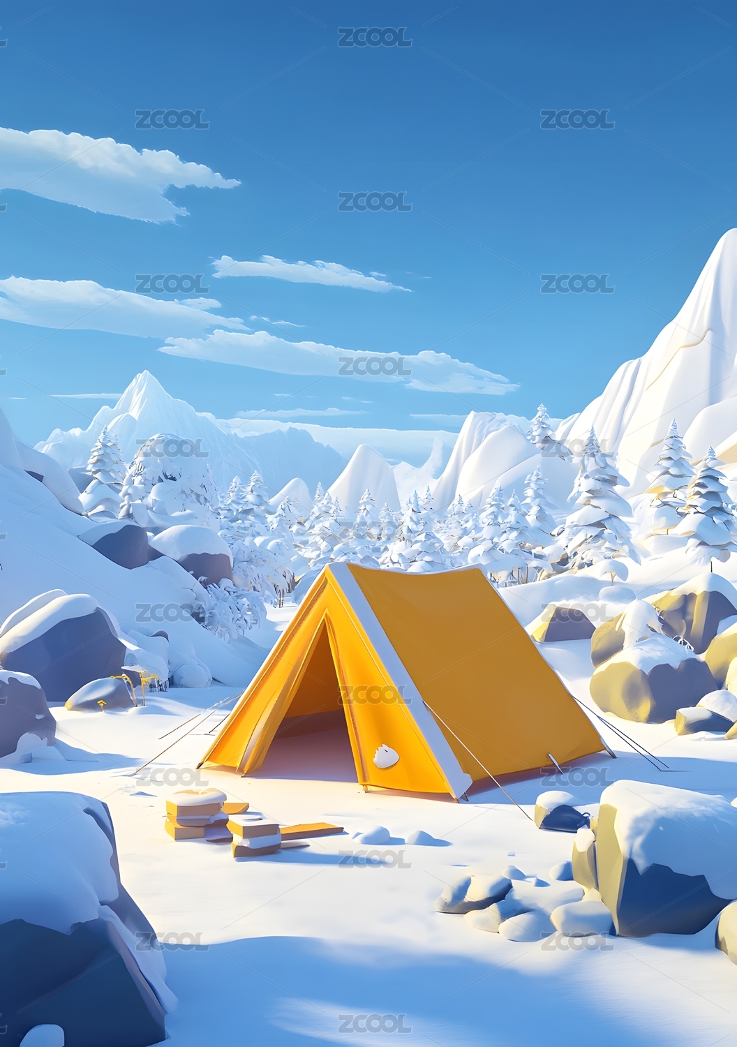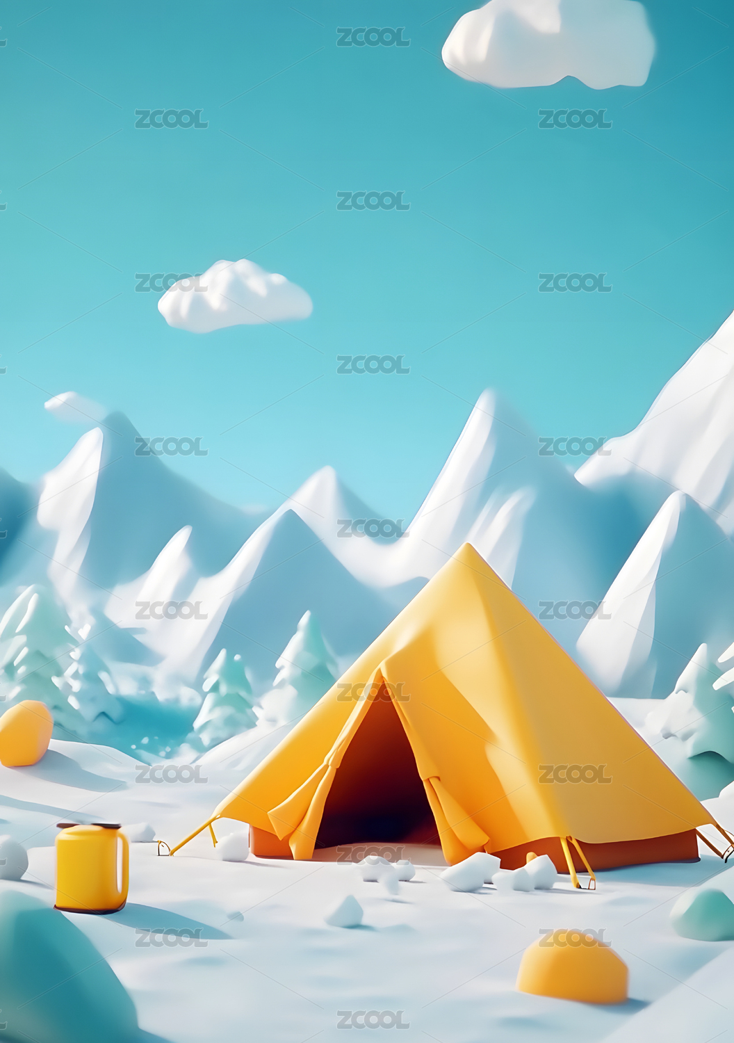 3D,背景,场景,海报,卡通,商务,设计,雪山,艺术,帐篷