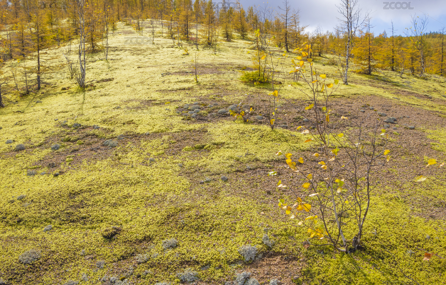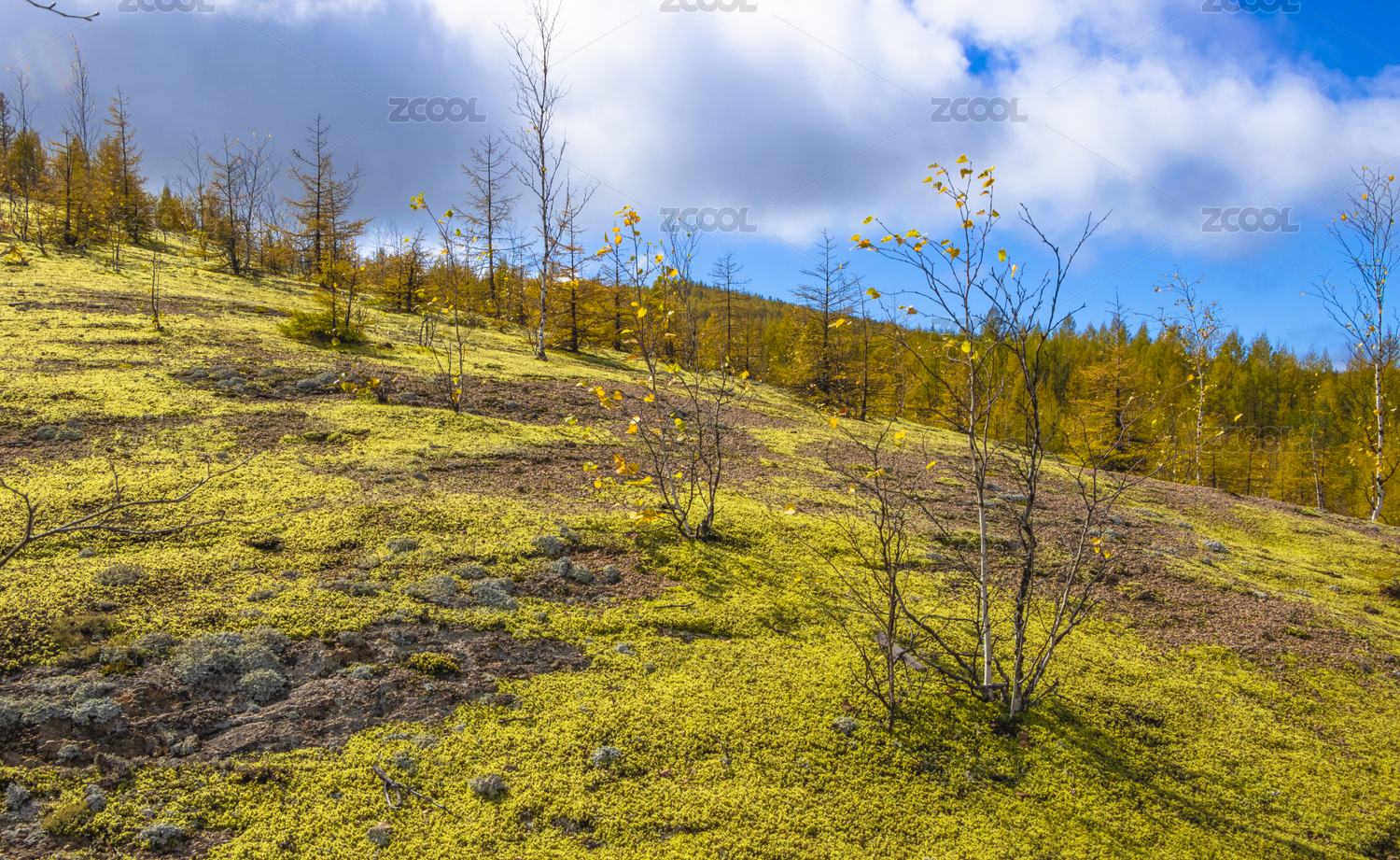 中国大兴安岭原始森林厚厚的苔藓层上的植物