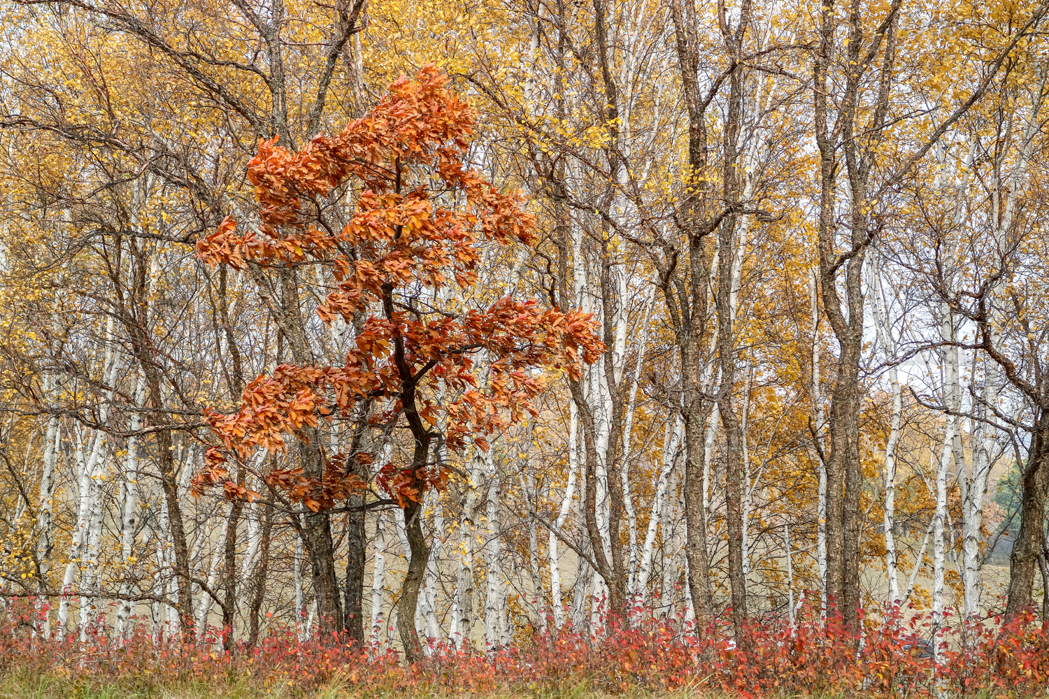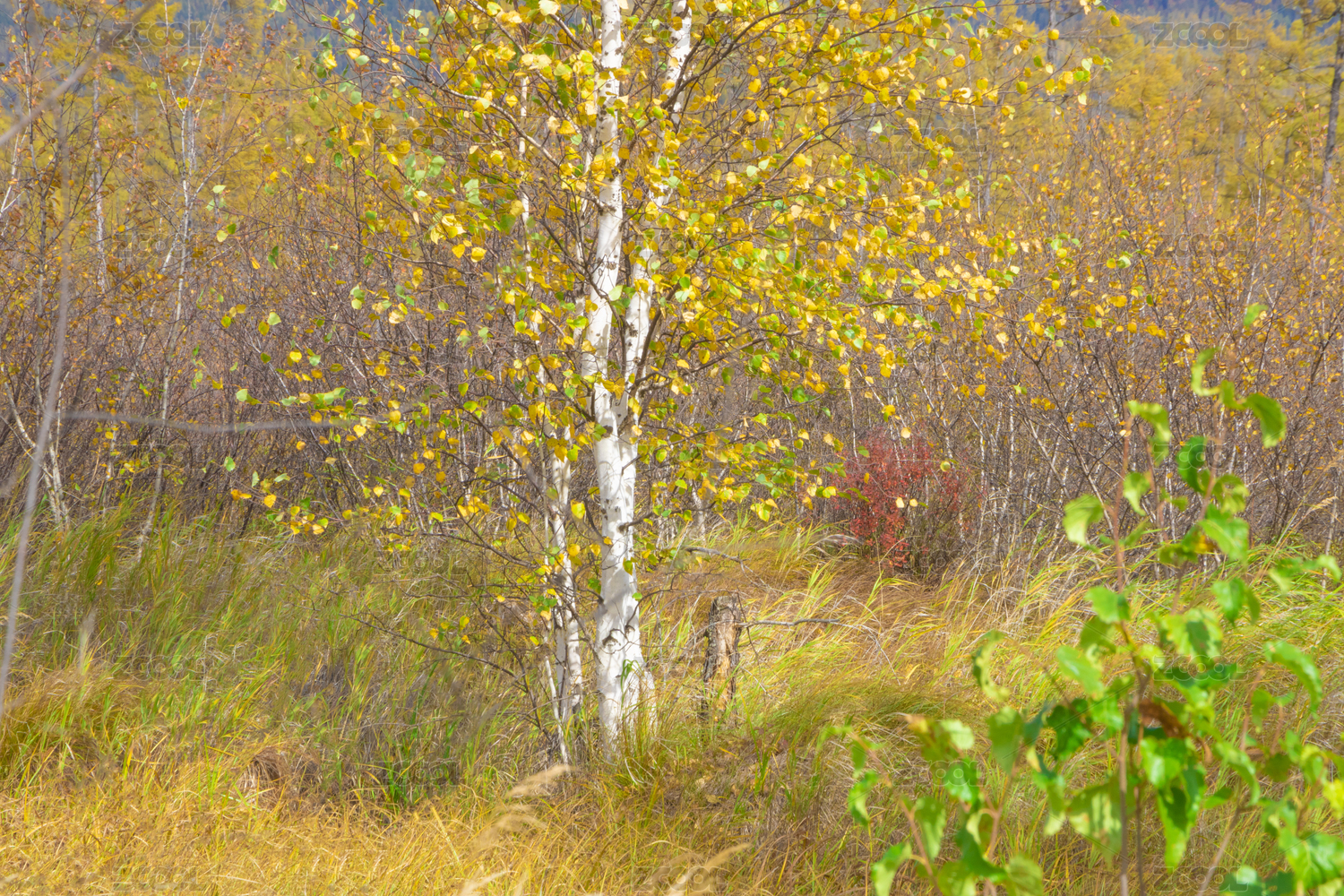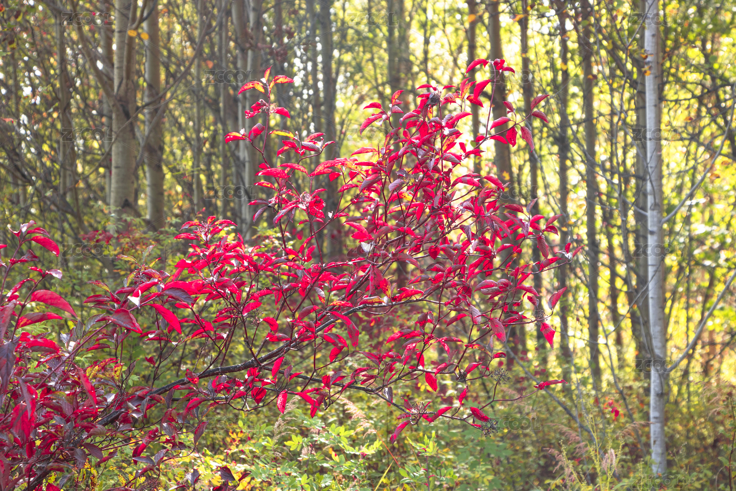 中国大兴安岭金秋茂密的原始森林中的霜叶
