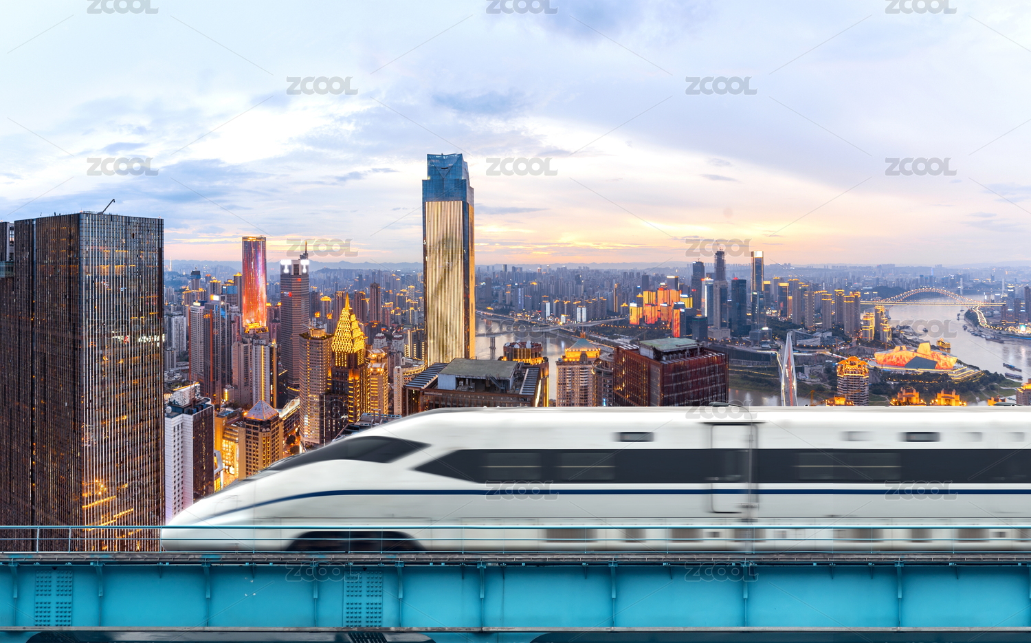 中国,重庆,轻轨,机车,建筑,合成,地铁,夕阳,黄昏,旅游