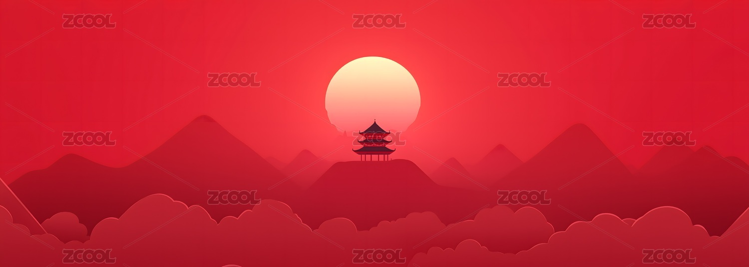 中国风古楼建筑传统国风古建筑国潮插画背景