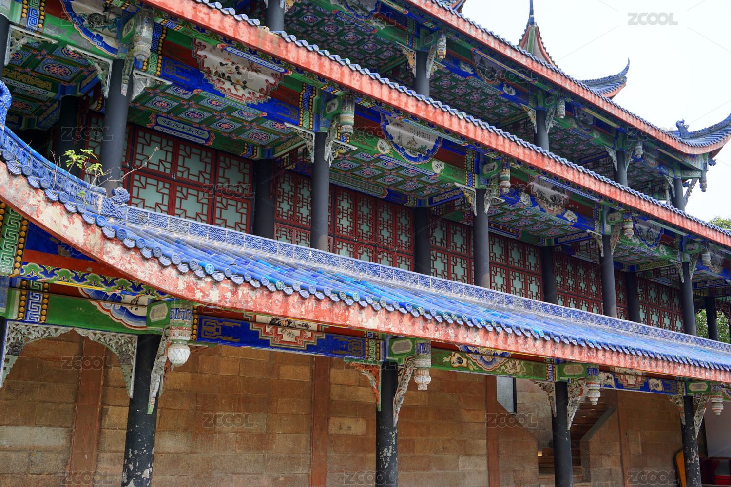 成都洛带古镇川北会馆乐楼单檐歇山式屋顶