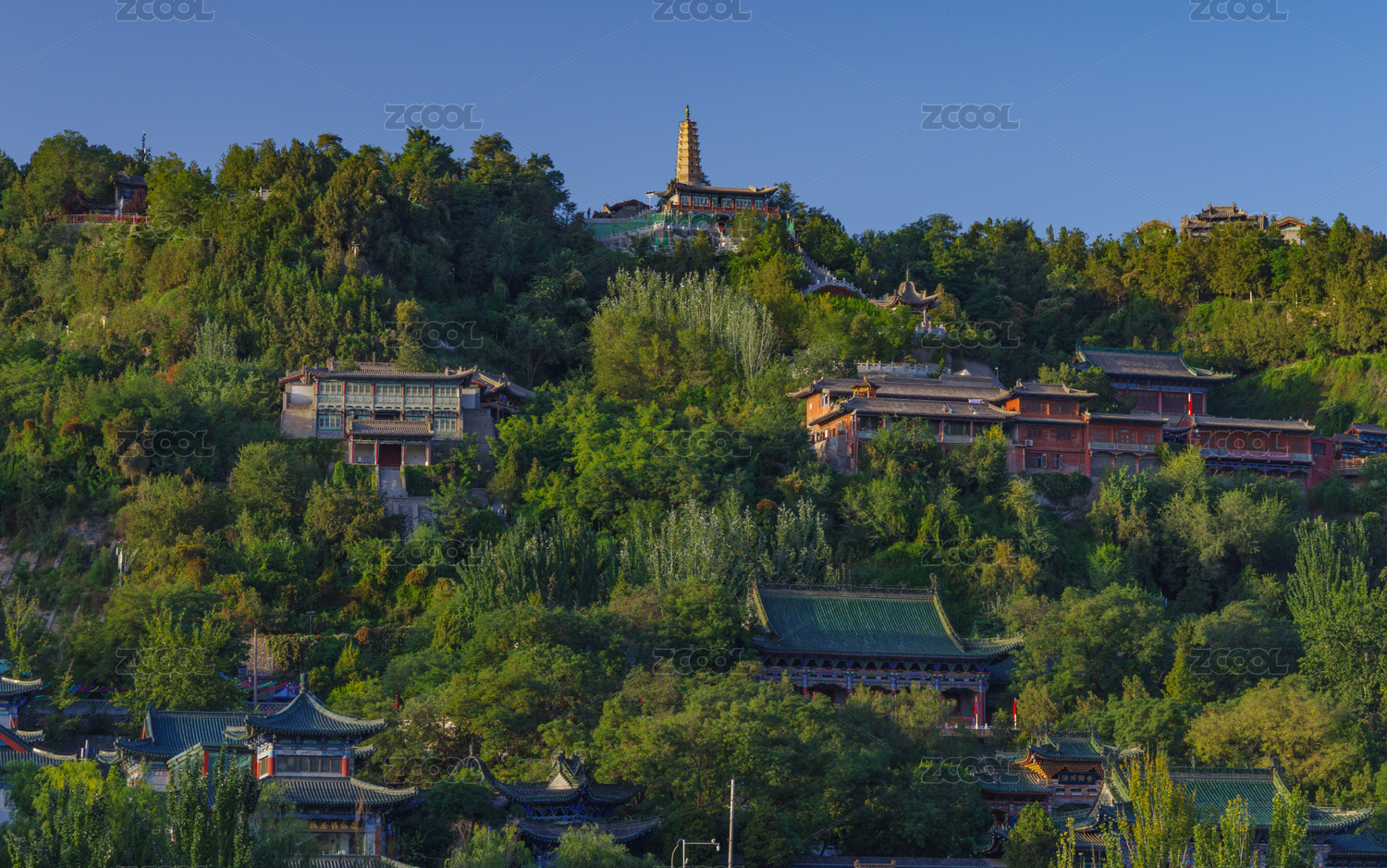 中国甘肃兰州白塔山公园中式传统建筑