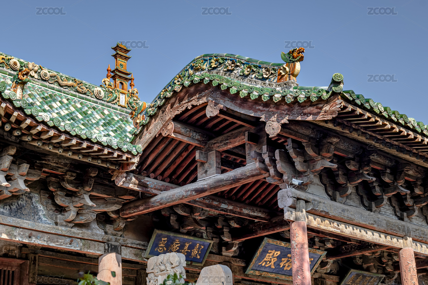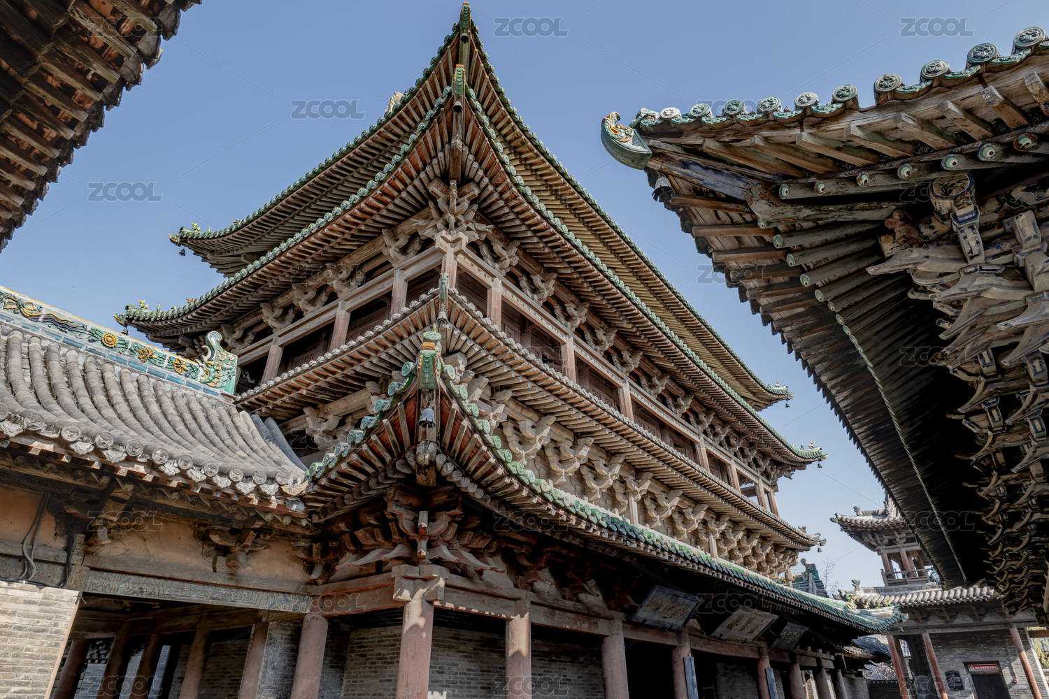 中国山西大同云冈石窟景区复古建筑仰视风光