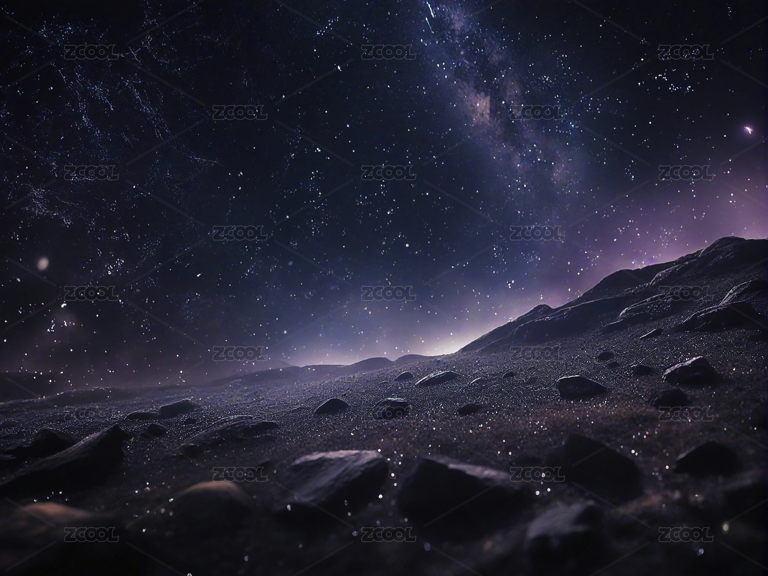 星空下的荒凉山谷与岩石