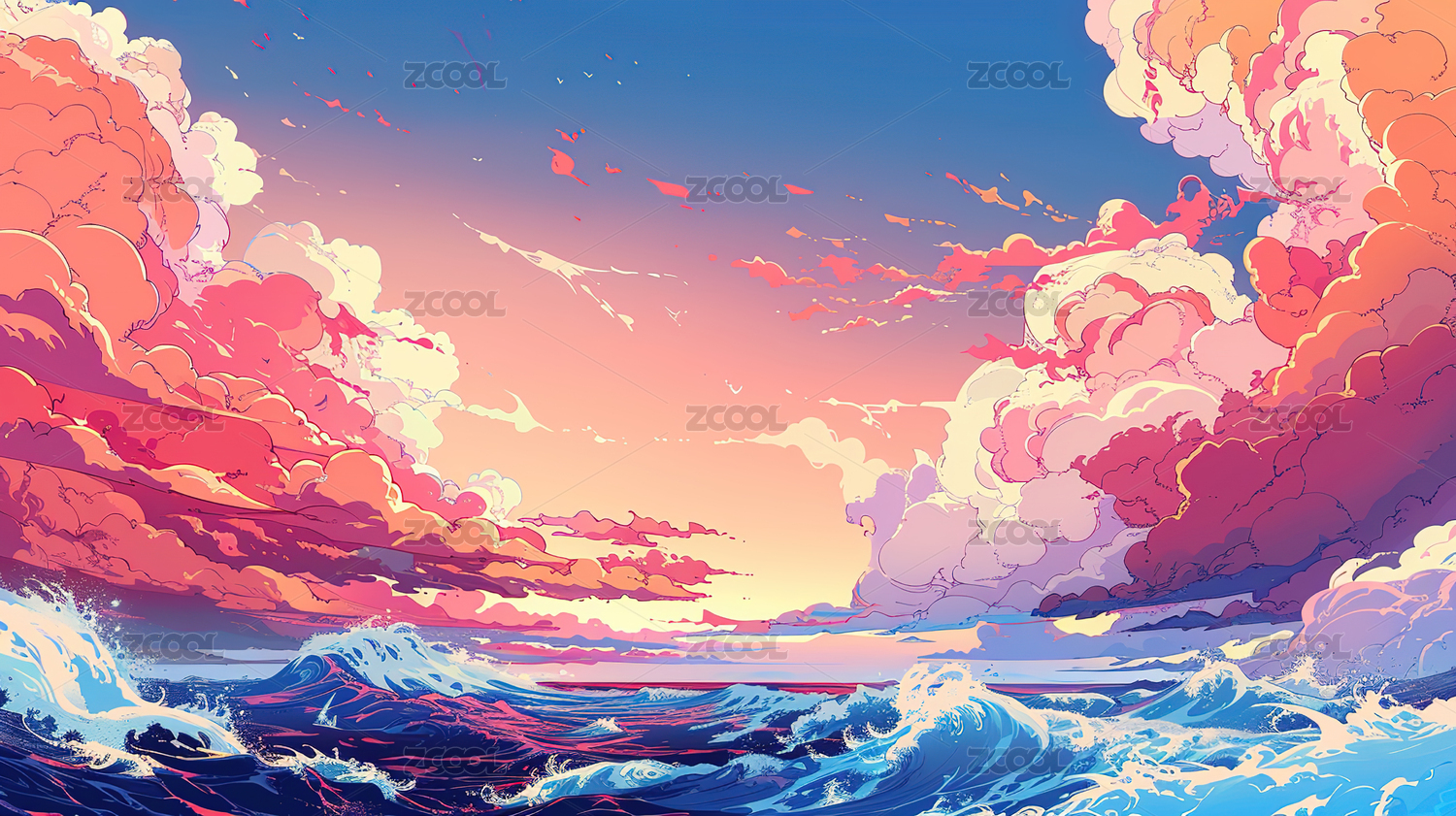 立夏节气海边冲浪插画,夏天海浪户外活动场
