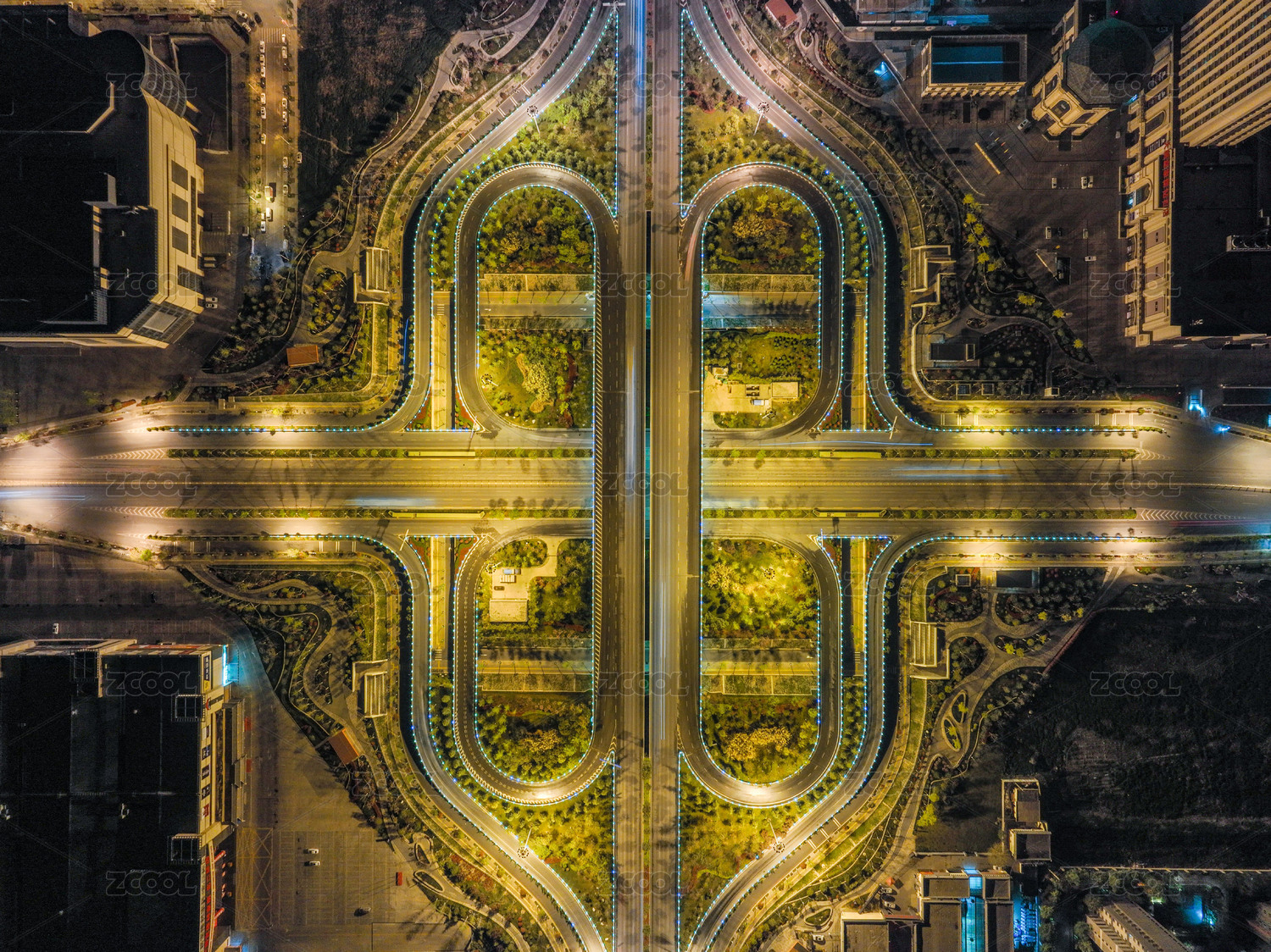 城市高架立交桥道路车流夜景航拍俯瞰视角