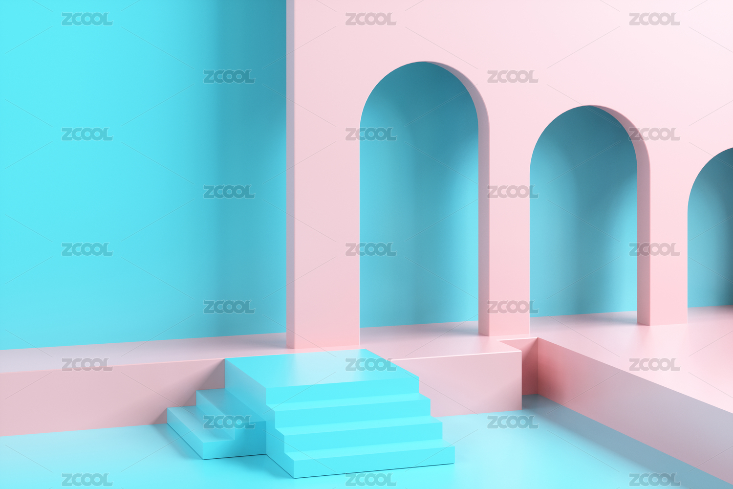 粉红色背景下的空楼梯