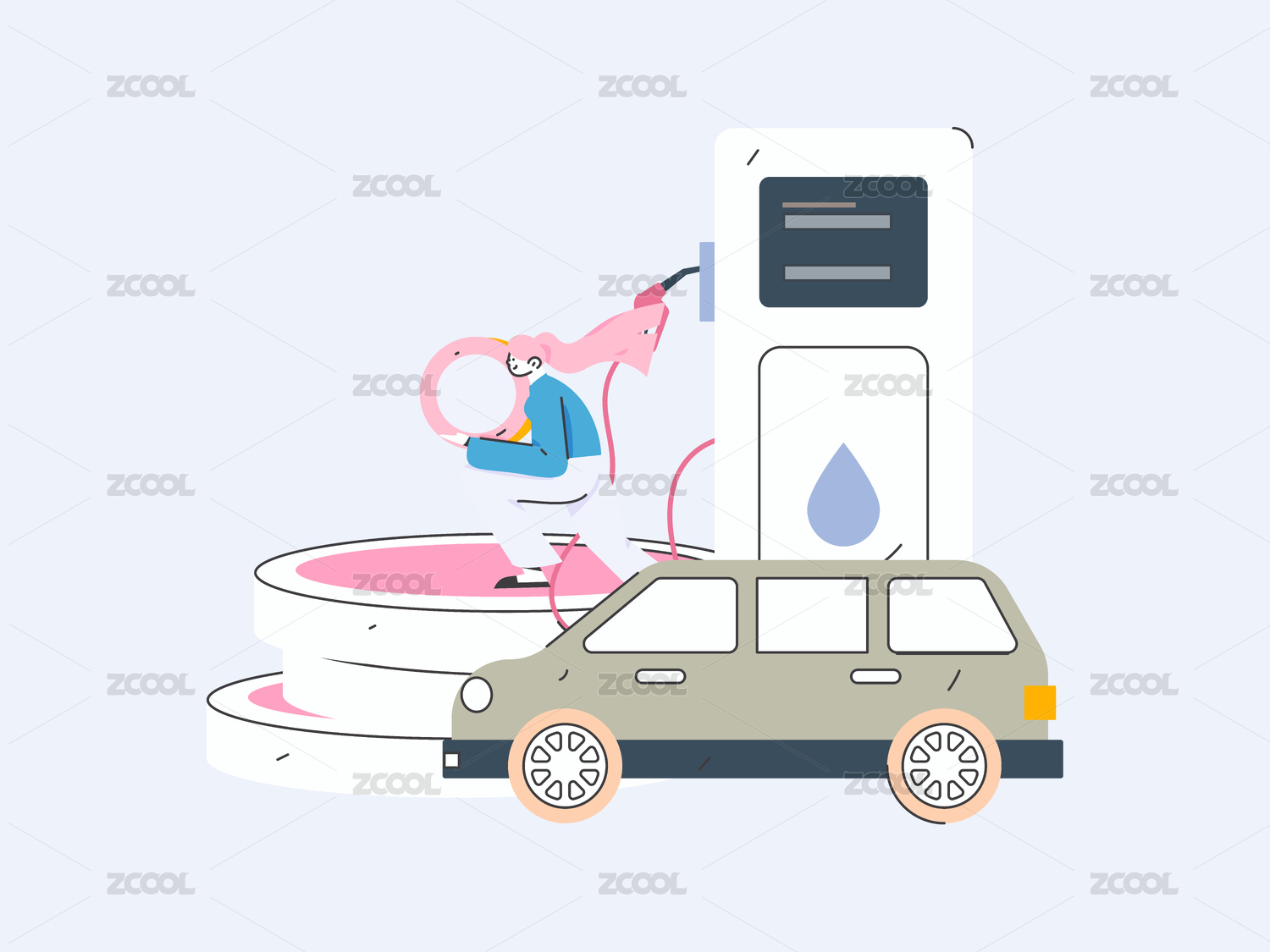 汽车加油获得优惠的人物矢量互联网运营手绘