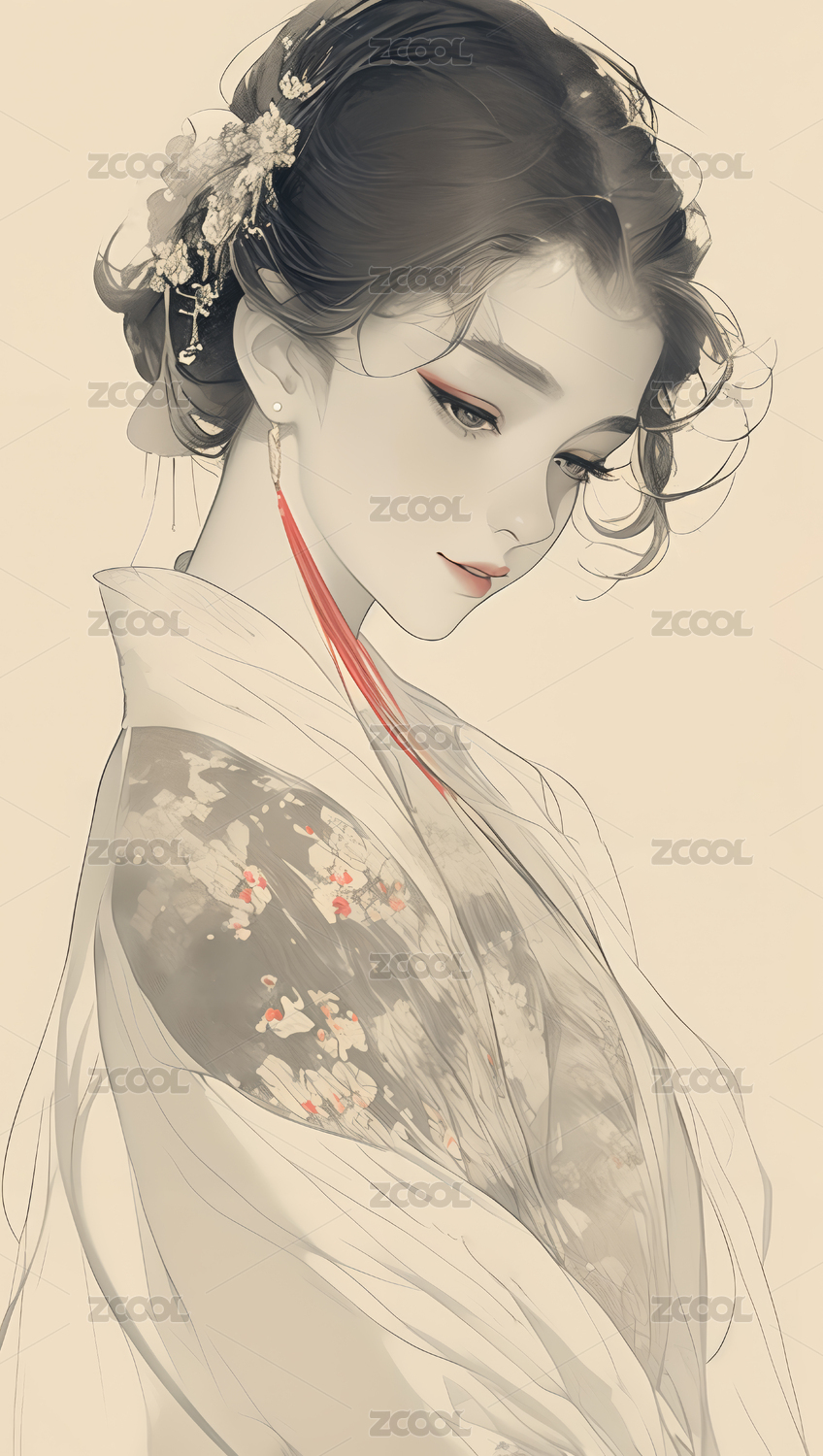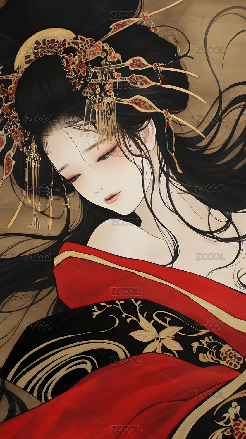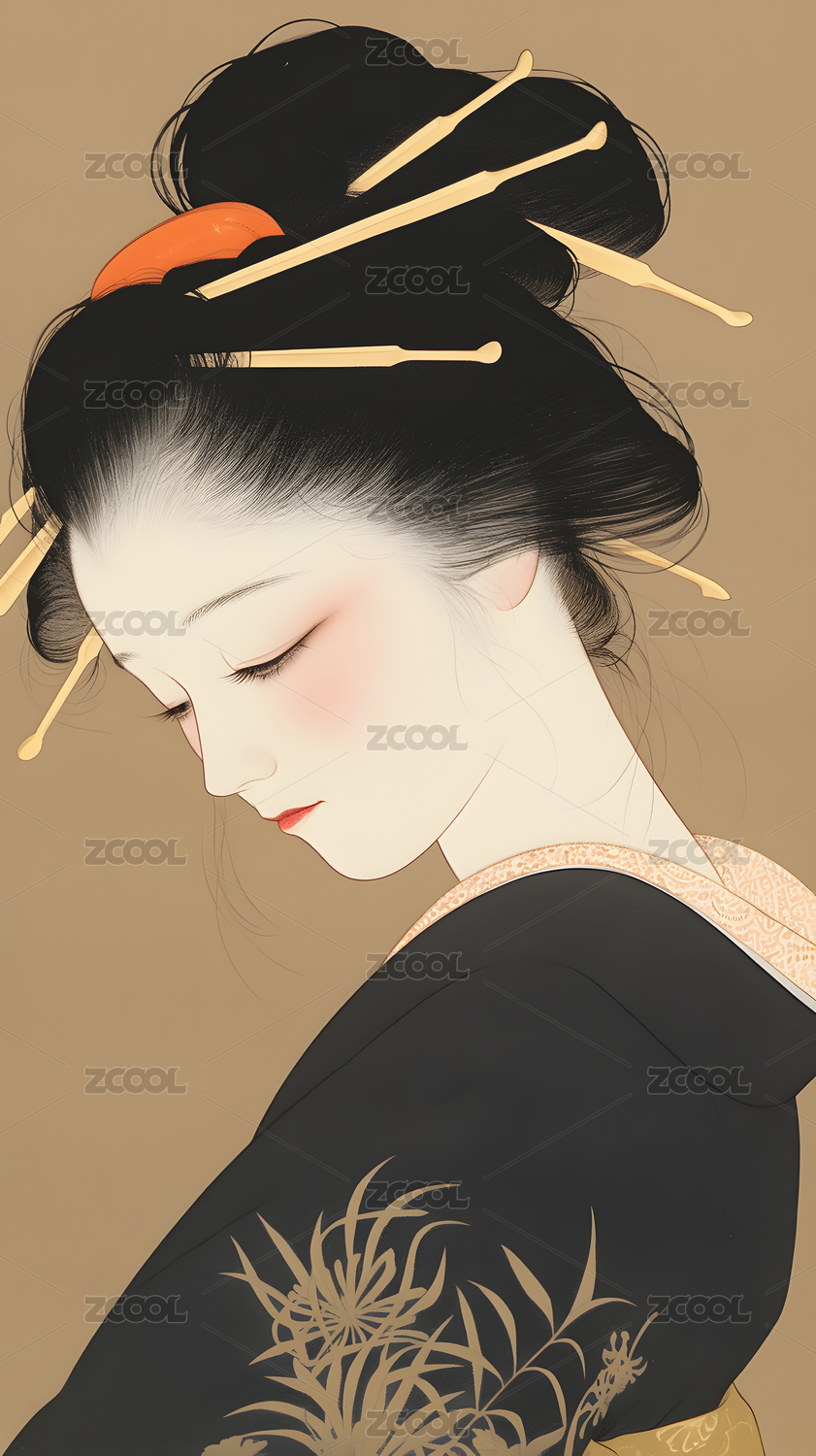 AIGCFG01,插画,日式,日漫,浮世绘,女人,人