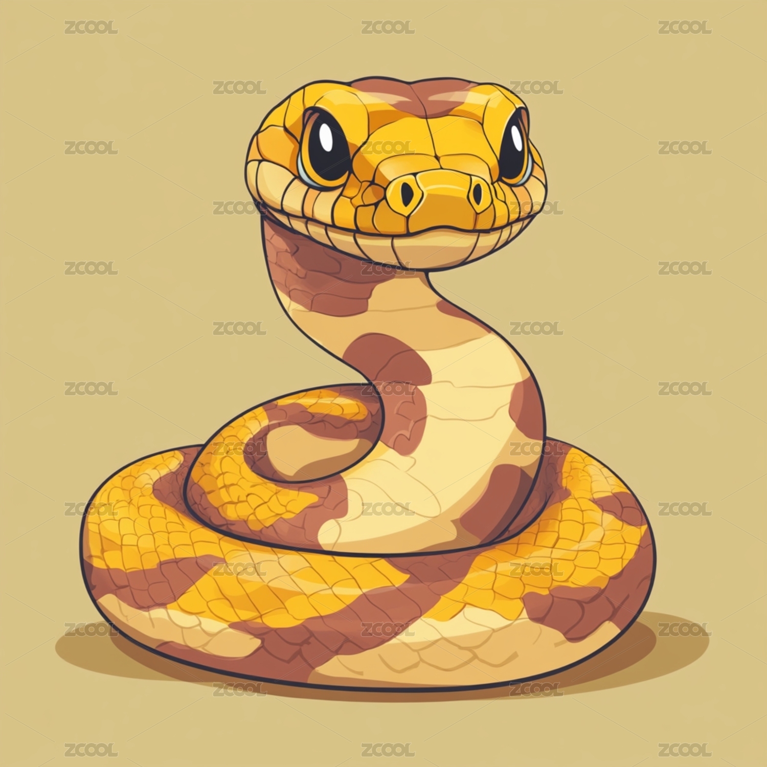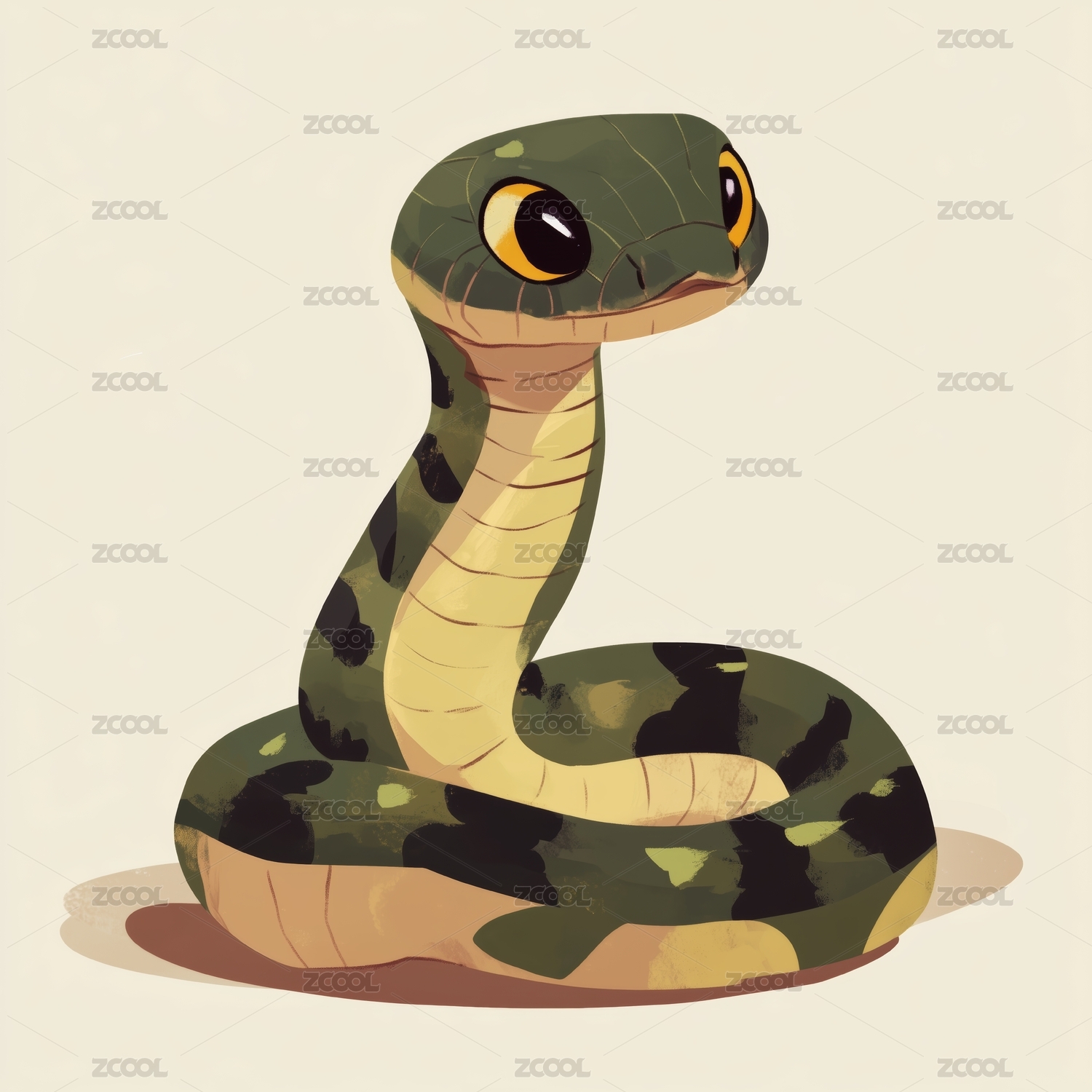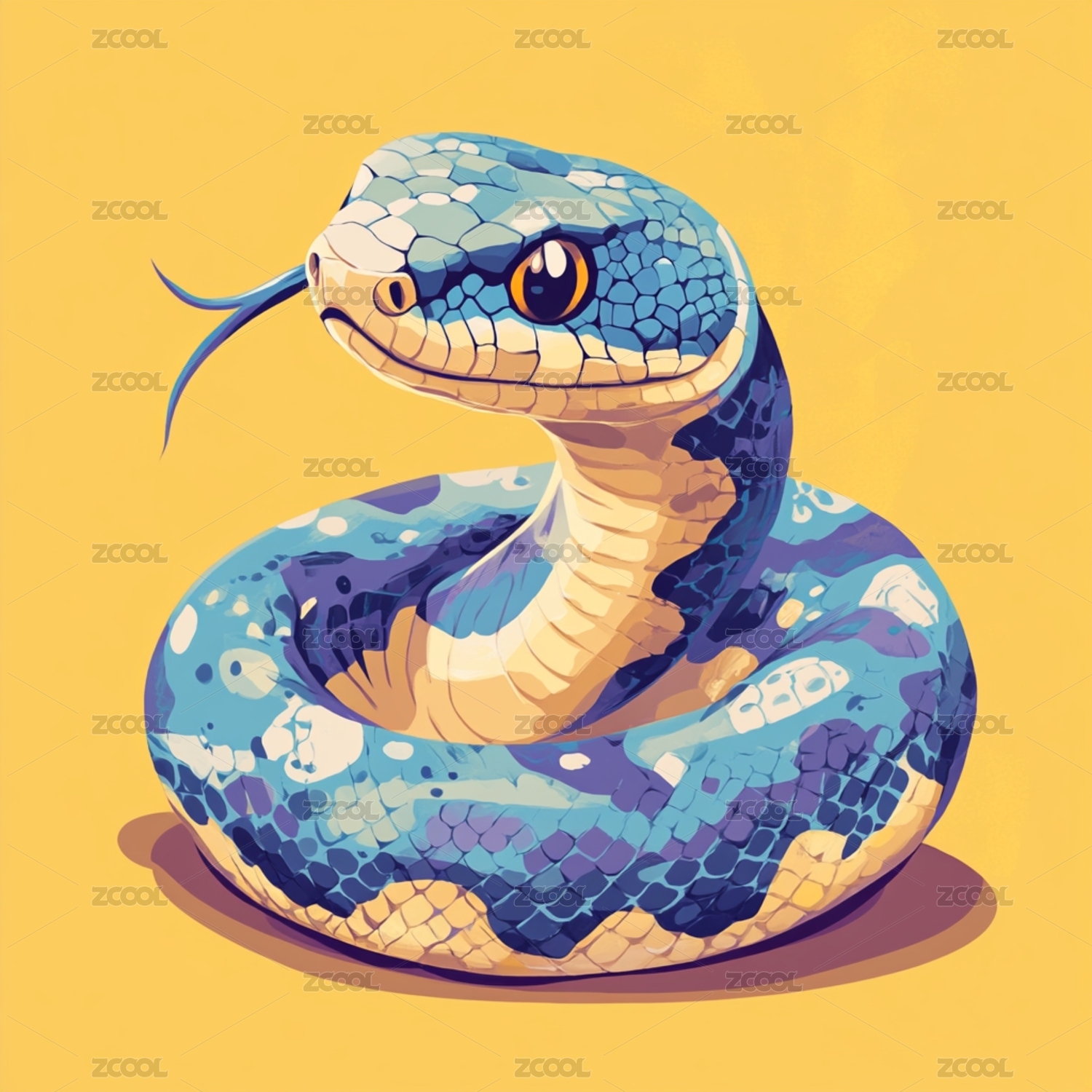 清新明亮一条可爱弯曲盘绕的蛇插画绘画