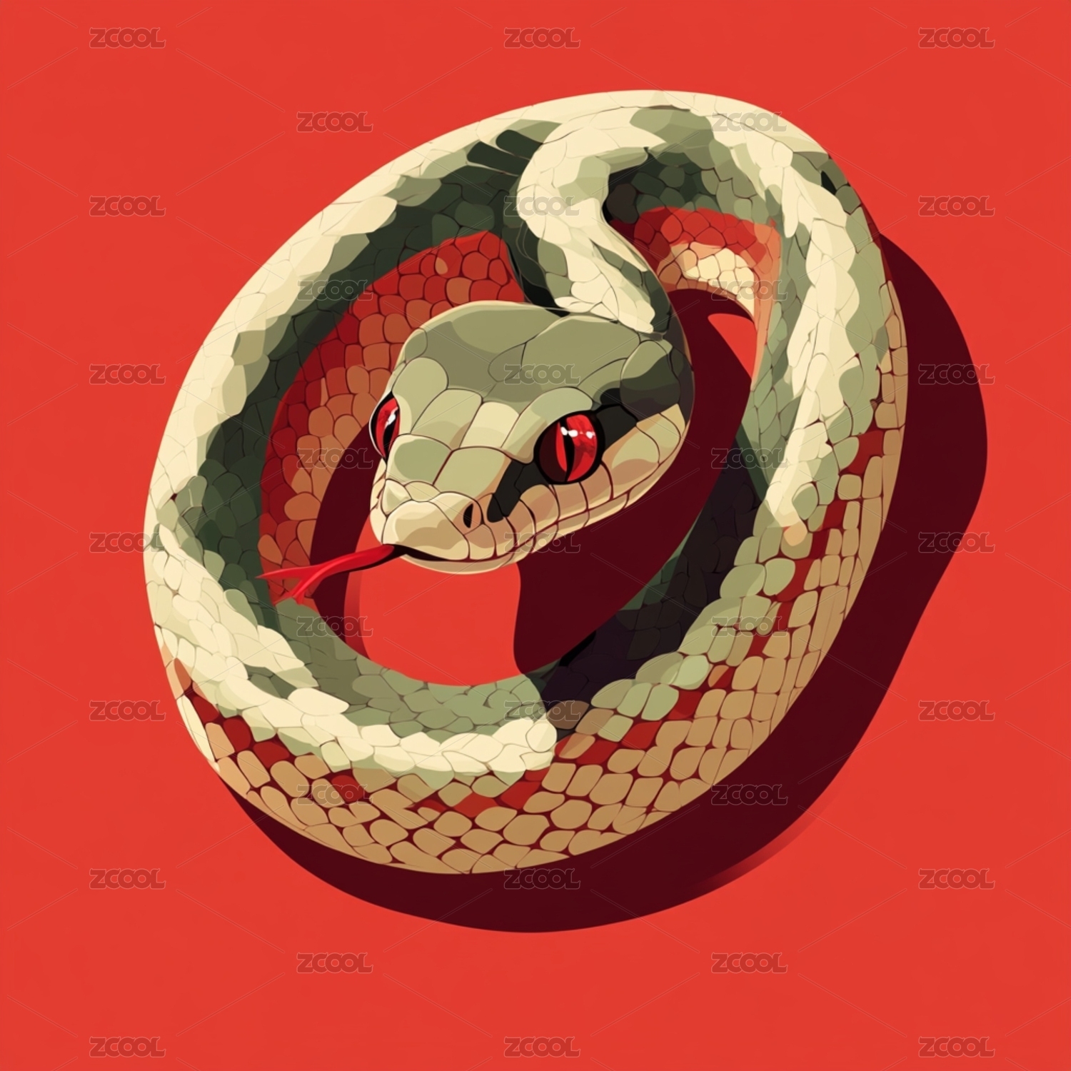 蛇年主题灵动缠绕的蛇壁纸插画艺术