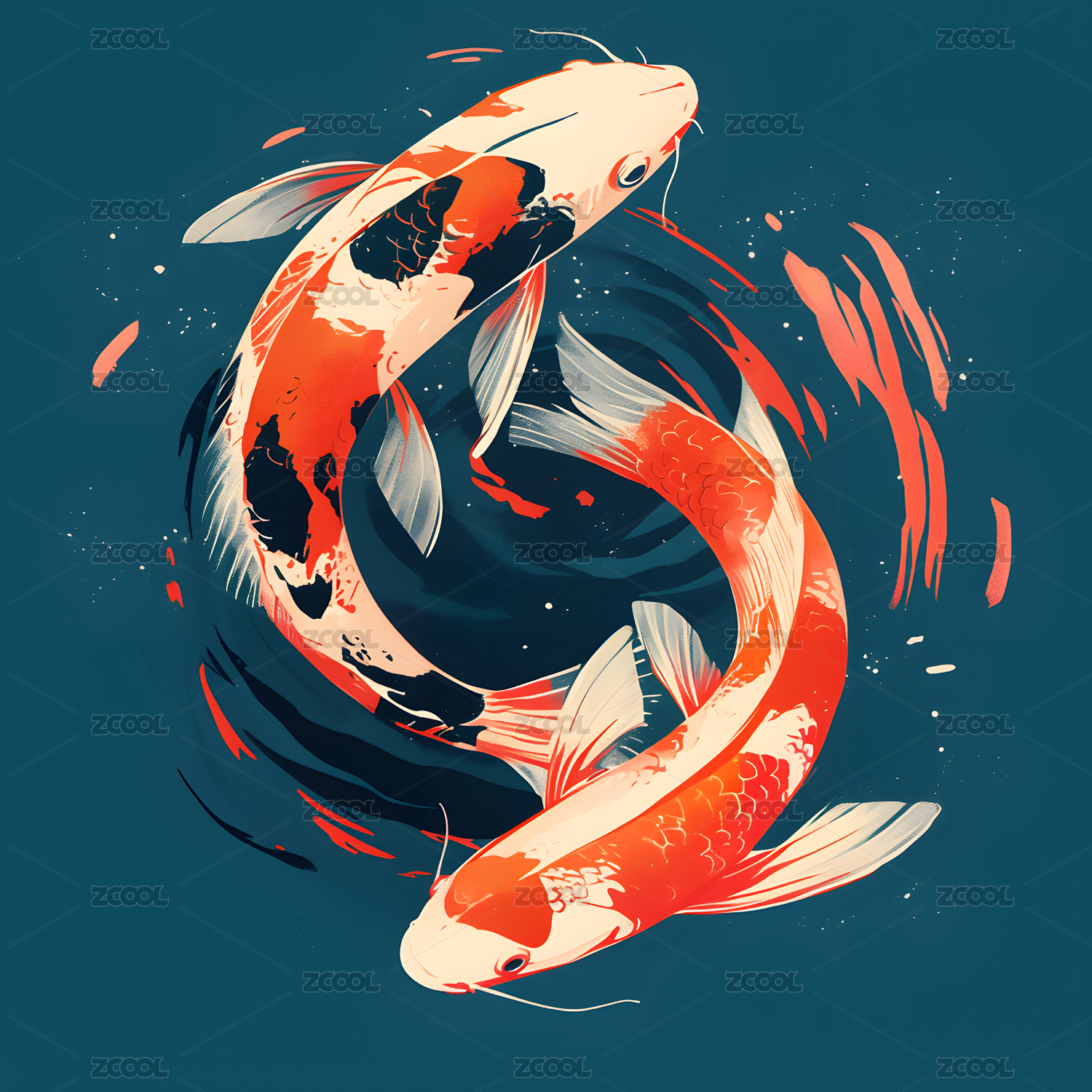 原画黑底极简奇幻魔幻彩色鲤鱼3D卡通插画