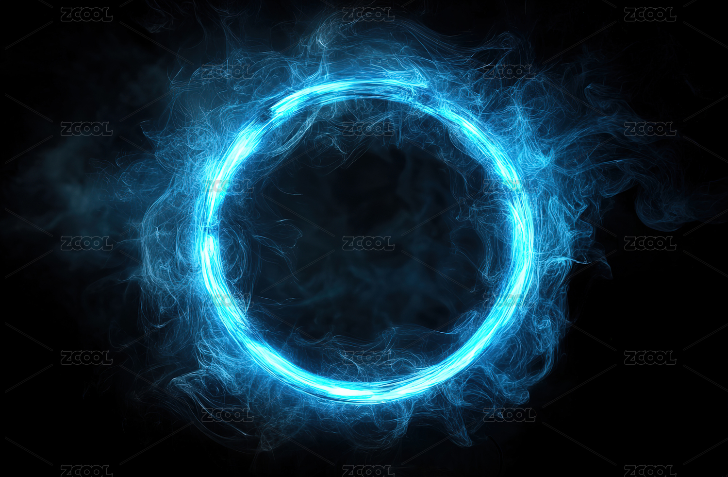 黑色背景下被照亮的蓝色烟雾的特写镜头